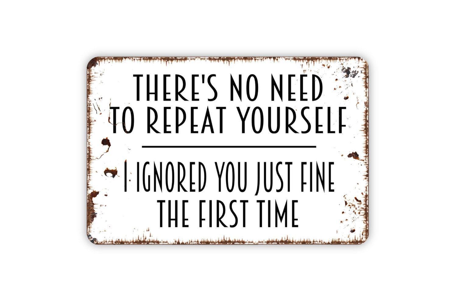 There’s No Reason To Repeat Yourself I Ignored You Fine The First Time Sign | Funny Sarcastic Wall Décor | Metal Sign or Vinyl Sticker
