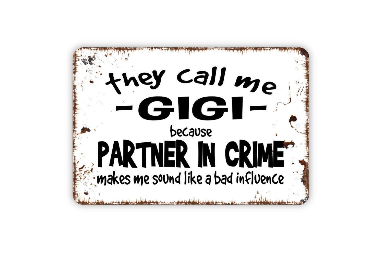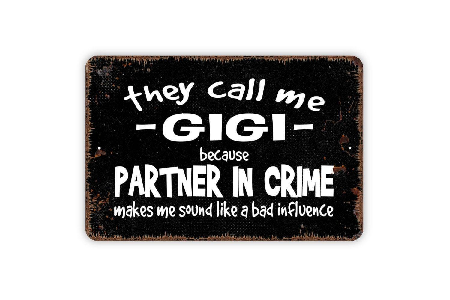 They Call Me Gigi Because Partner In Crime Makes Me Sound Like A Bad Influence Sign - Funny Metal Indoor or Outdoor Wall Art