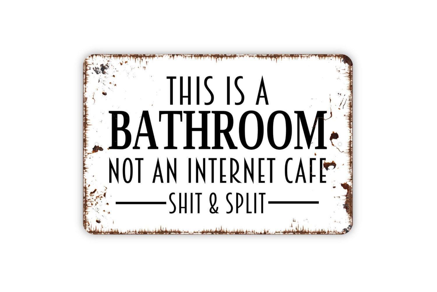 This Is A Bathroom Not An Internet Cafe Shit and Split Sign - Funny Bathroom Metal Wall Art