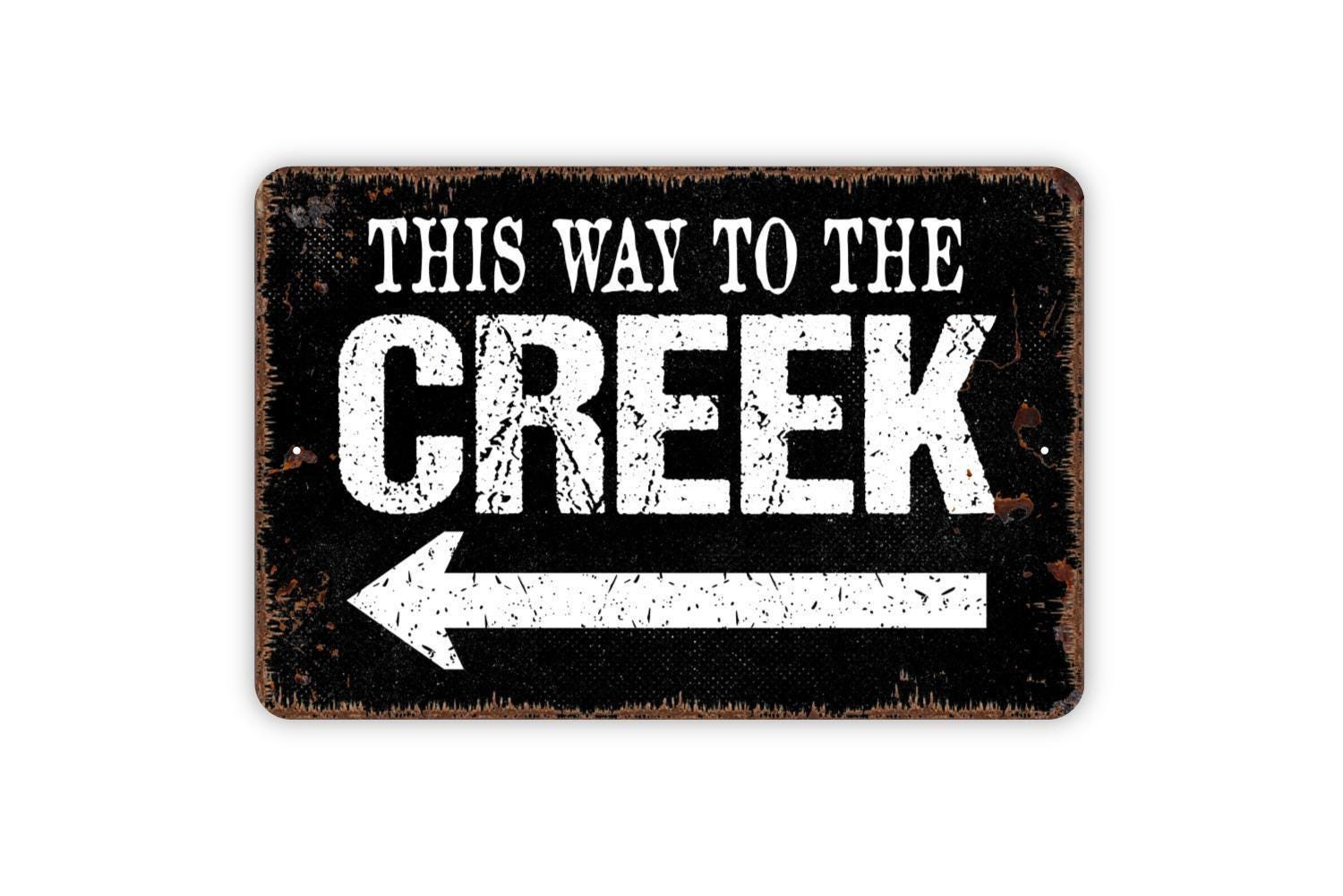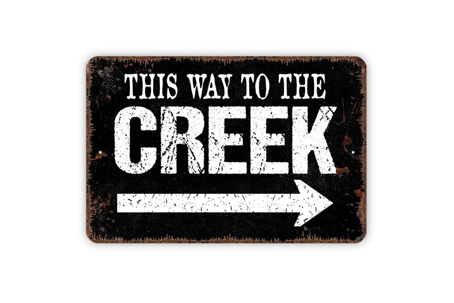 This Way To The Creek with Right or Left Arrow Metal Sign, Farmhouse Style Wall Decor Modern Wall Metal Sign