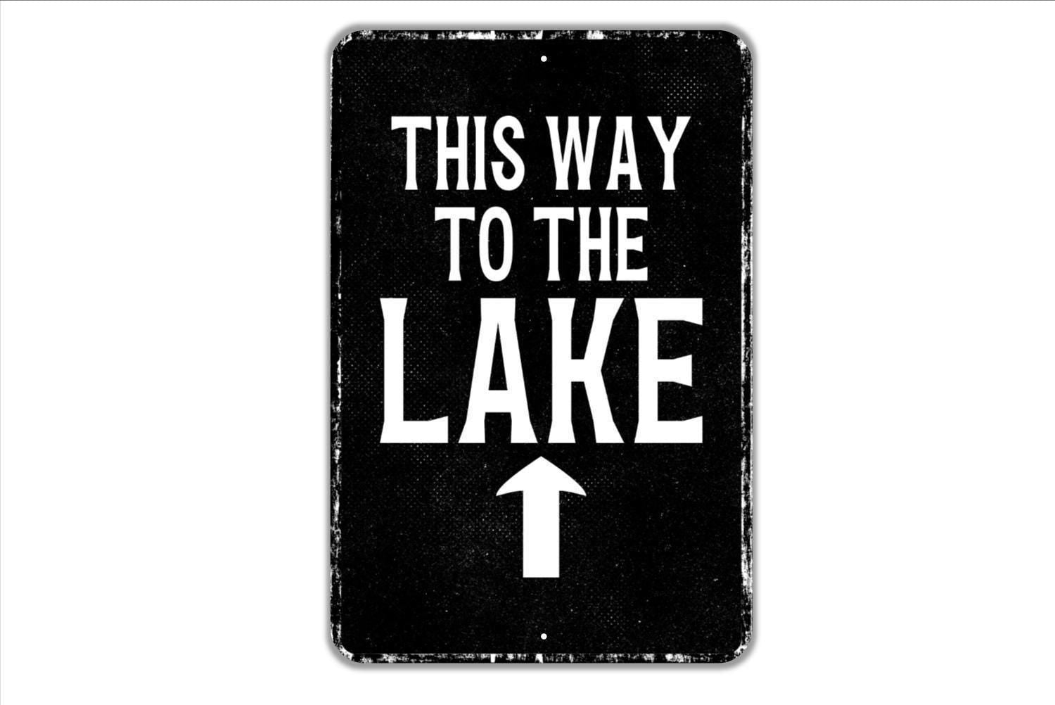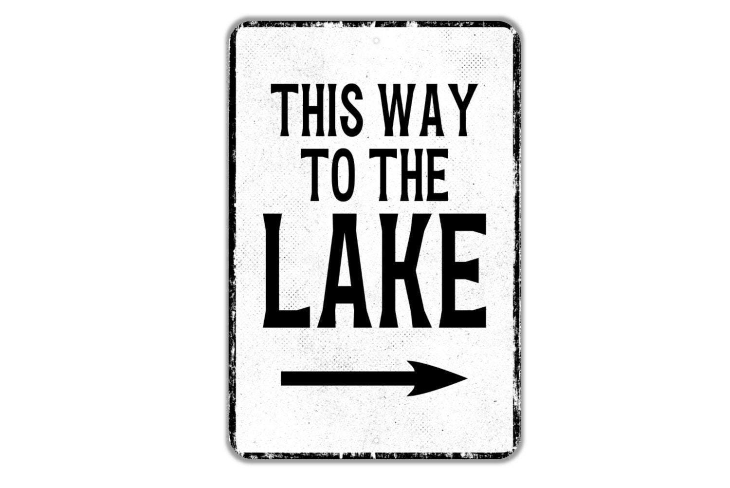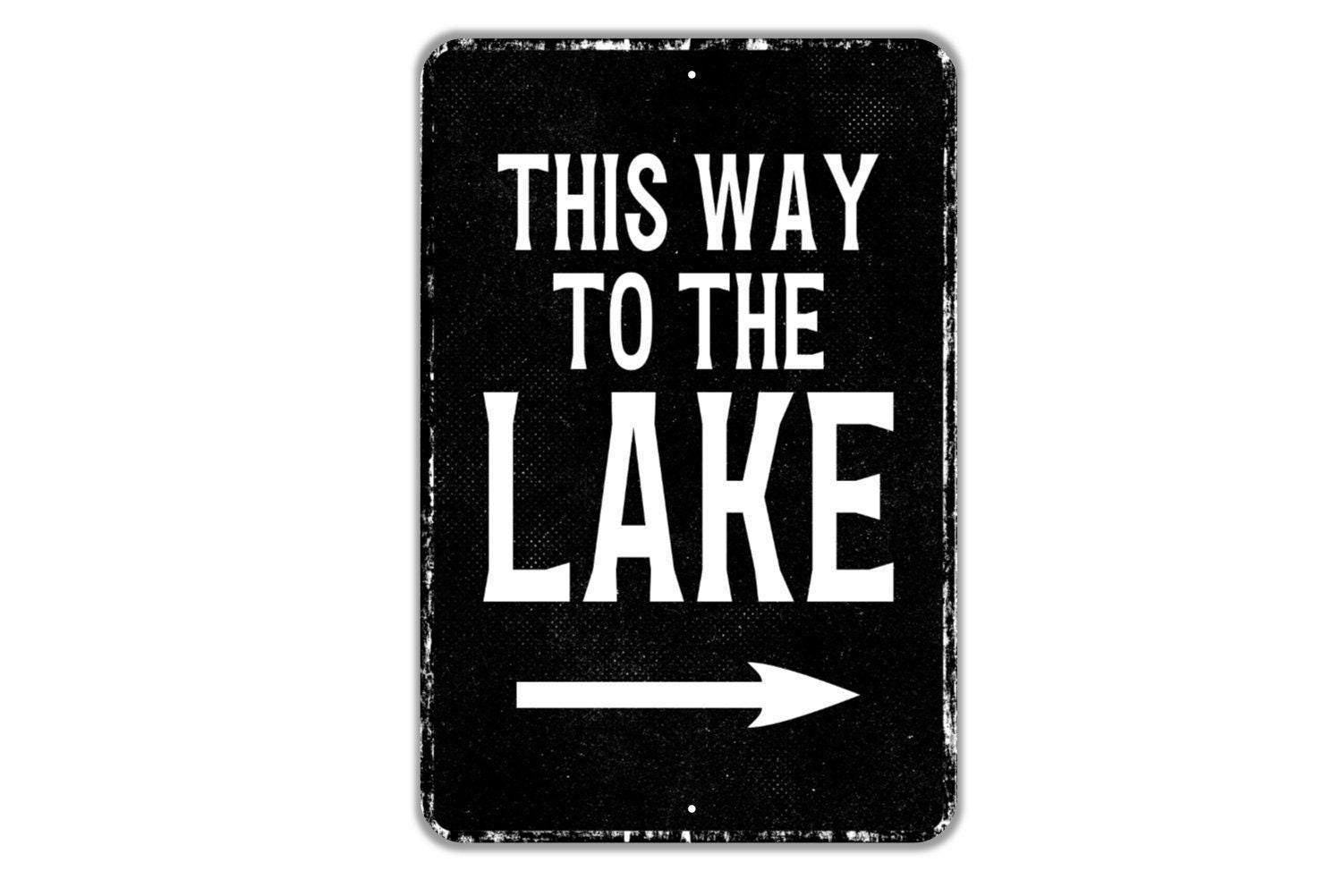 This Way To The Lake With Arrow Sign Metal Wall Art or Vinyl Sticker for Lake House, Cabin, Beach, Vacation Home, Rustic Outdoor Wall Decor