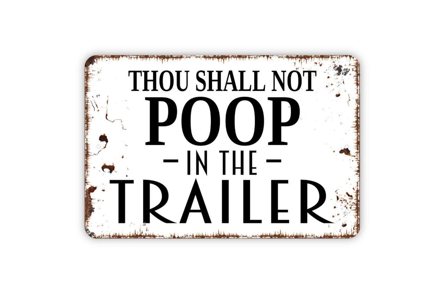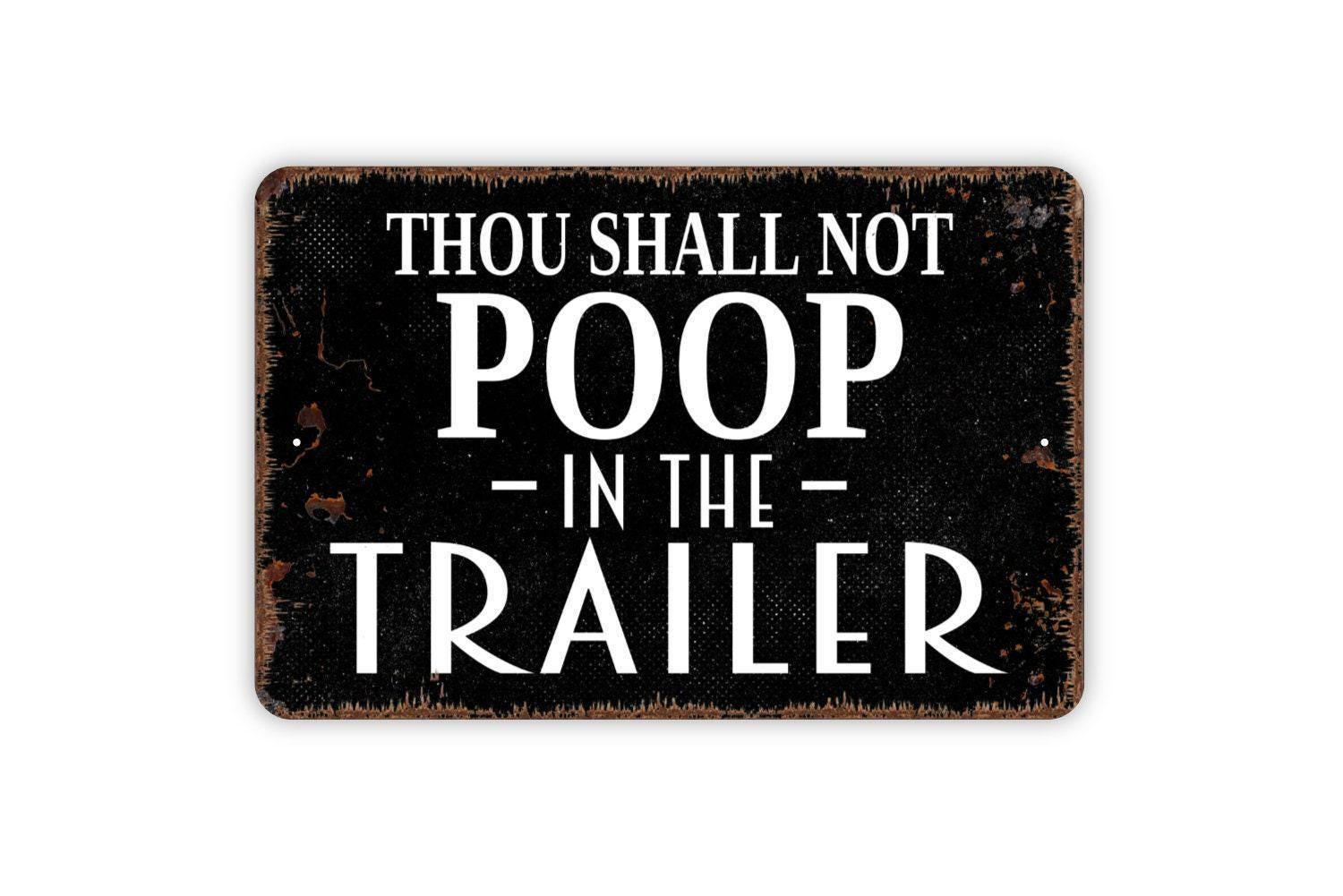 Thou Shall Not Poop In The Trailer Sign | Funny RV Camper or Travel Trailer Bathroom Wall Sign | Rustic Metal Sign or Vinyl Sticker Décor