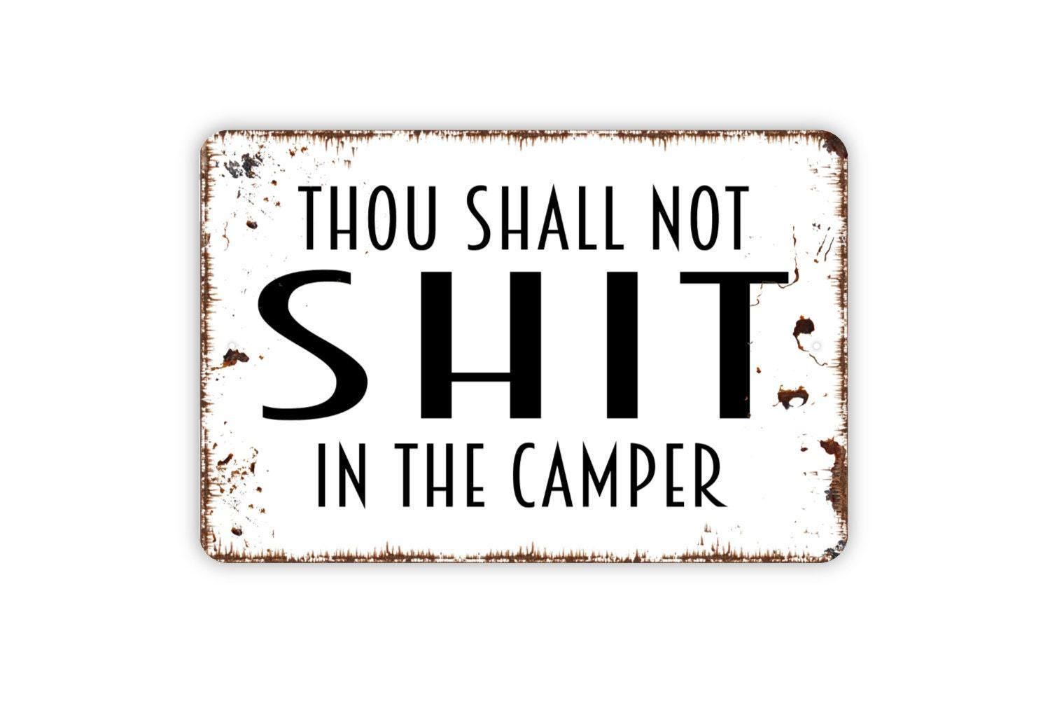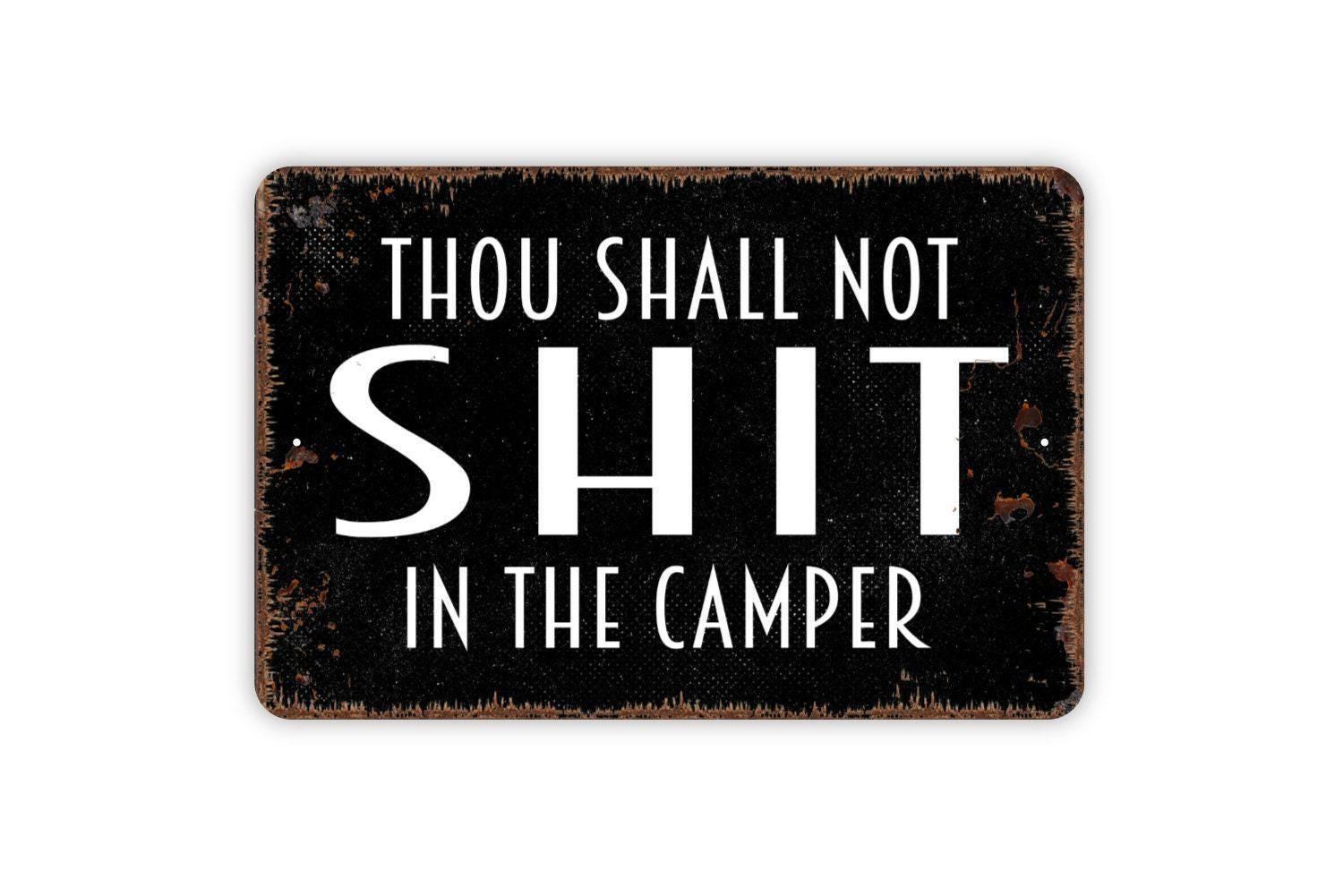 Thou Shall Not Shit In The Camper Sign - Funny Camping Metal Wall Art - Indoor or Outdoor