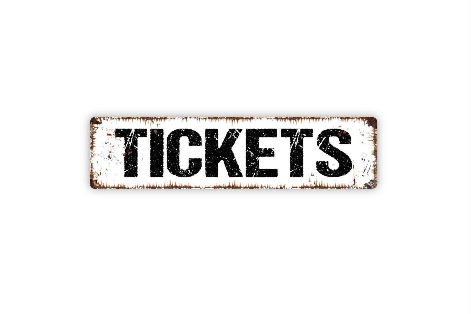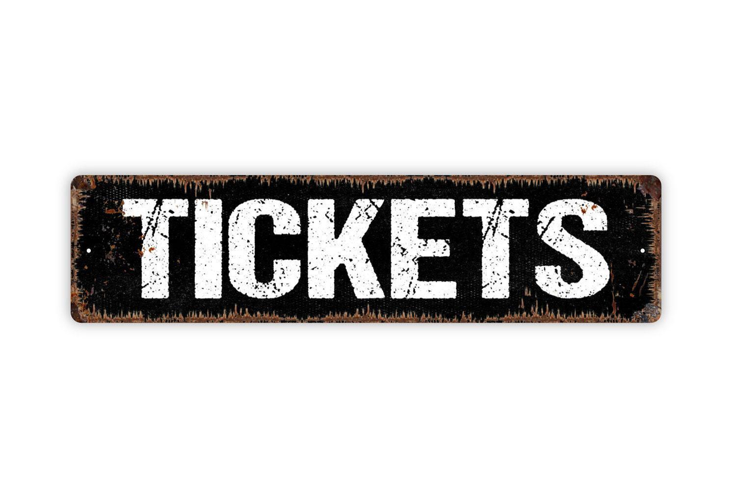 Tickets Sign | Event Admission Counter Decor | Metal Sign or Vinyl Sticker for Carnival, Fair, Theater, or Concession Stand