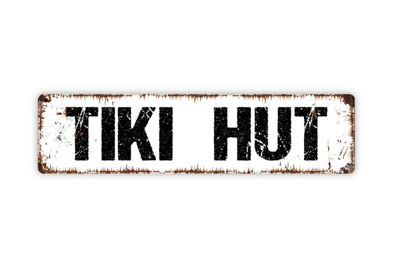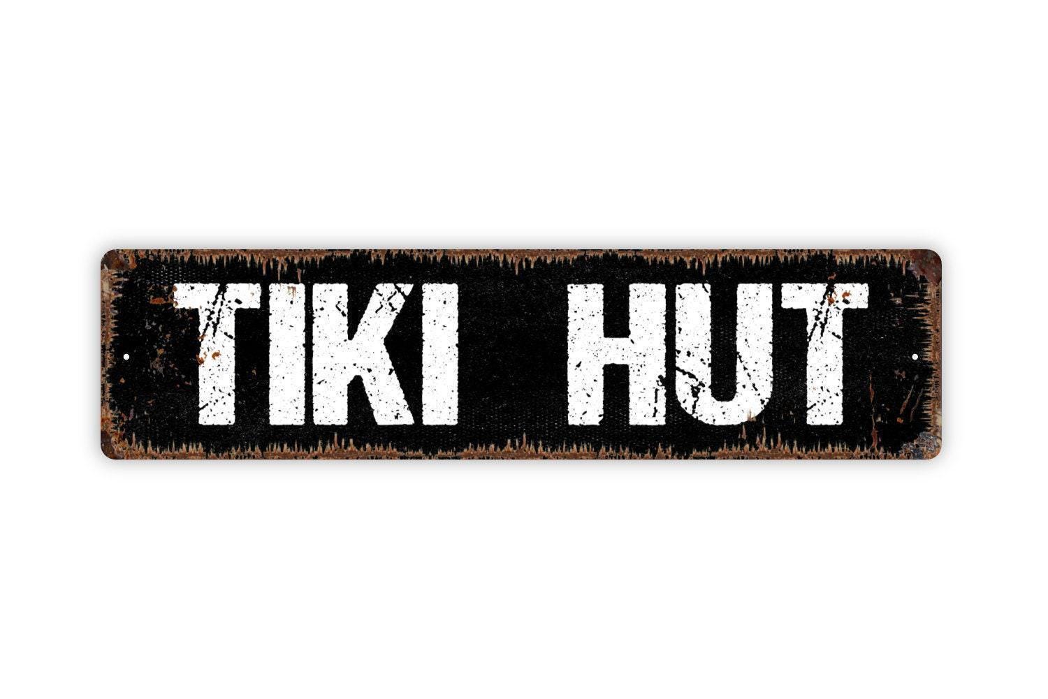Tiki Hut Sign | Tropical Bar or Patio Wall Sign | Backyard, Poolside, or Beach House Décor | Metal Tiki Bar Sign or Vinyl Sticker Gift