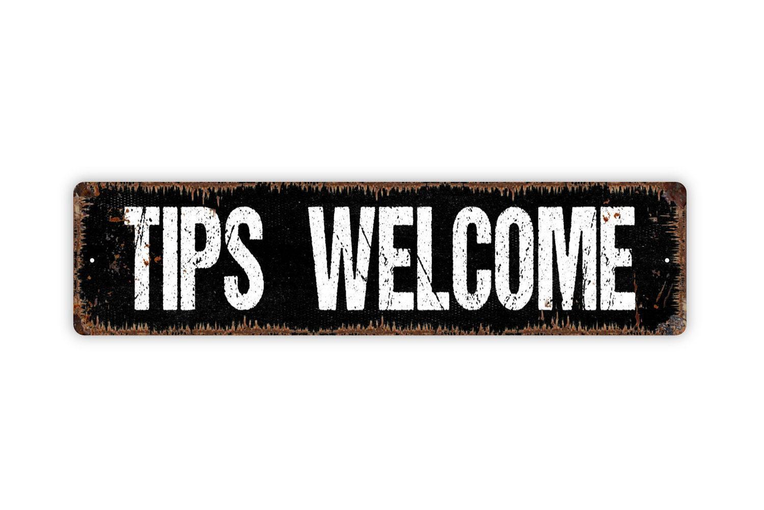 Tips Welcome Metal Sign - Gratuity Appreciated Dining Server Tip Your Waitress Waiter Rustic Street Metal Sign Or Door Name Plaque