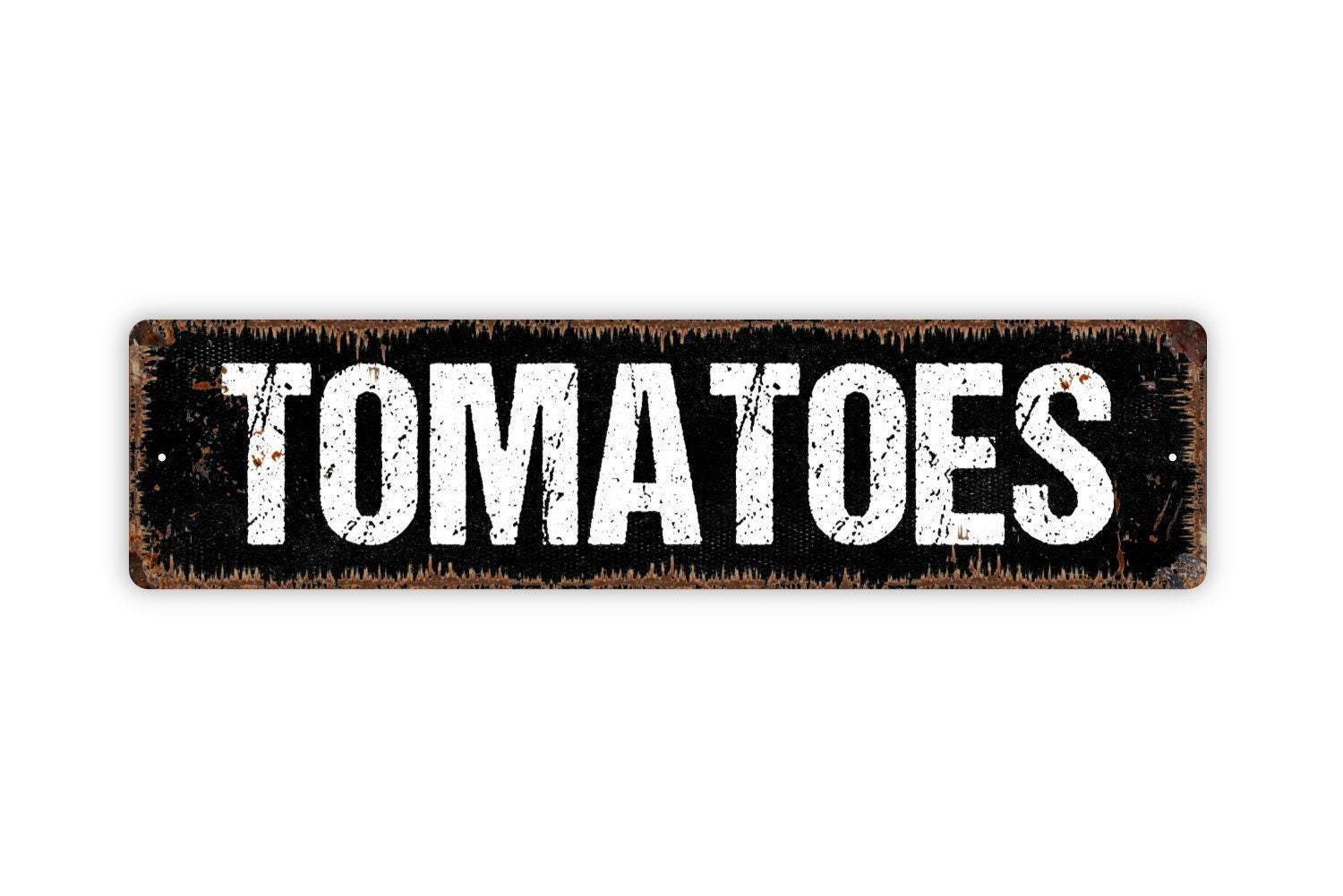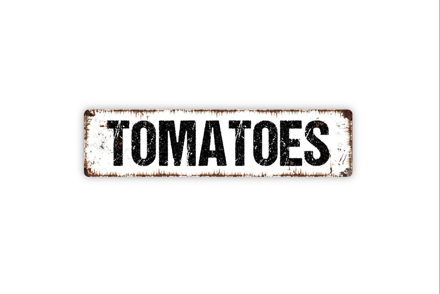Tomatoes Sign - Vegetables Garden Marker Produce Fruit Farmers Market Vinyl Sticker Or Street Metal Sign or Door Name Plate Plaque