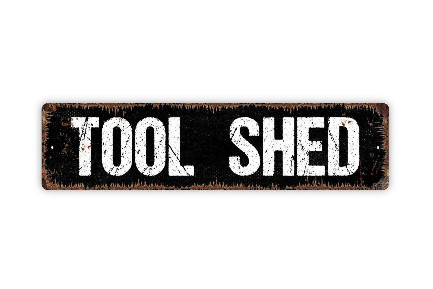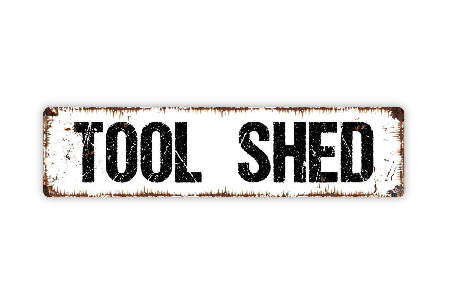 Tool Shed Sign - Workshop Garage Man Cave She Shed Storage Gardening Vinyl Sticker Or Street Metal Sign or Door Name Plate Plaque