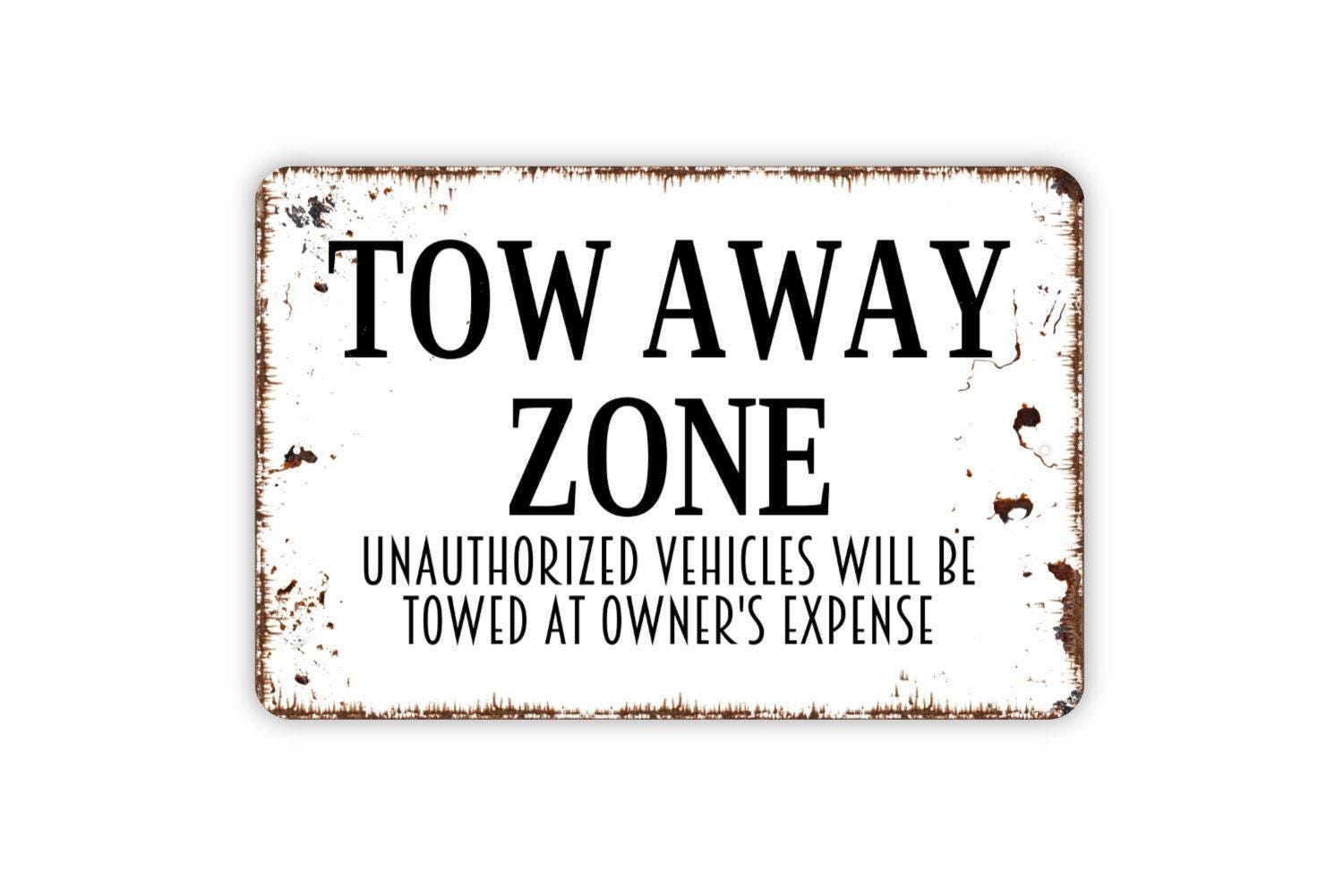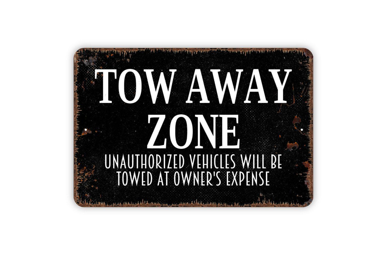 Tow Away Zone Unauthorized Vehicles Will Be Towed At Owner's Expense Sign - Metal Sign Wall Art Indoor Or Outdoor