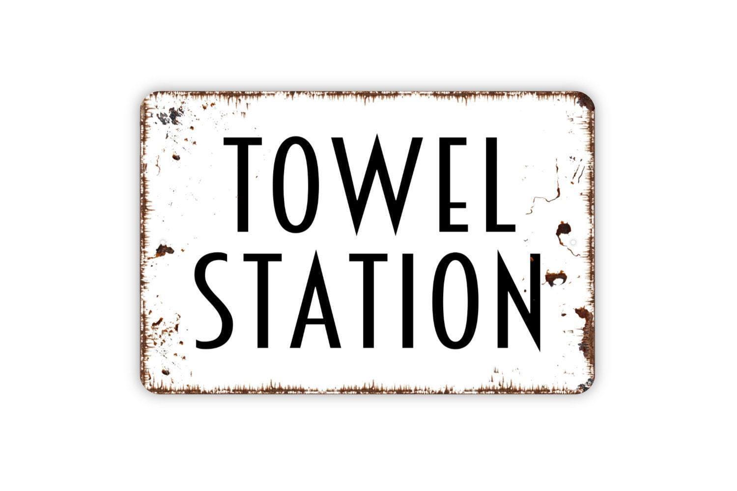 Towel Station Sign | Pool, Beach, or Spa Metal Sign or Vinyl Sticker | Bathroom, Laundry Room, or Patio Decor | Housewarming Gift