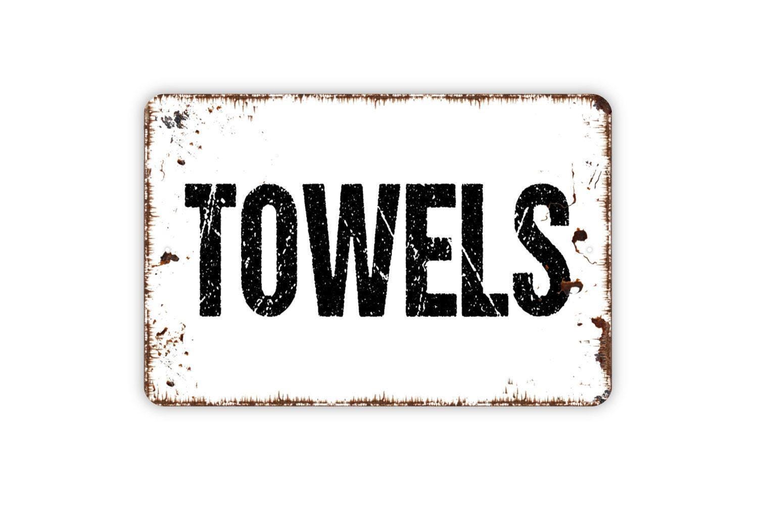 Towels Sign | Bathroom, Spa, Poolside, or Beach House Wall Sign | Functional Organization Metal Towels Sign or Vinyl Sticker Décor