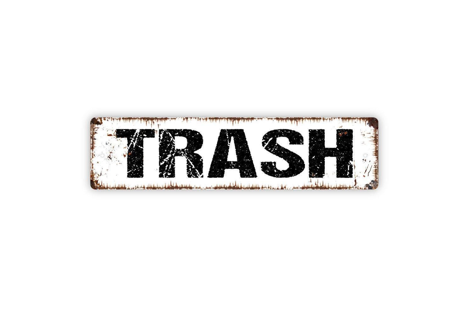 Trash Sign - Recycle Bin Refuse Garbage Vinyl Sticker Or Street Metal Sign or Door Name Plate Plaque