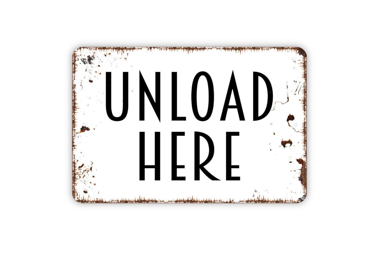 Unload Here Sign | Rustic Property Wall Decor | Business or Farm Delivery Sign | Custom Metal Sign or Vinyl Sticker | Driveway Yard Sign