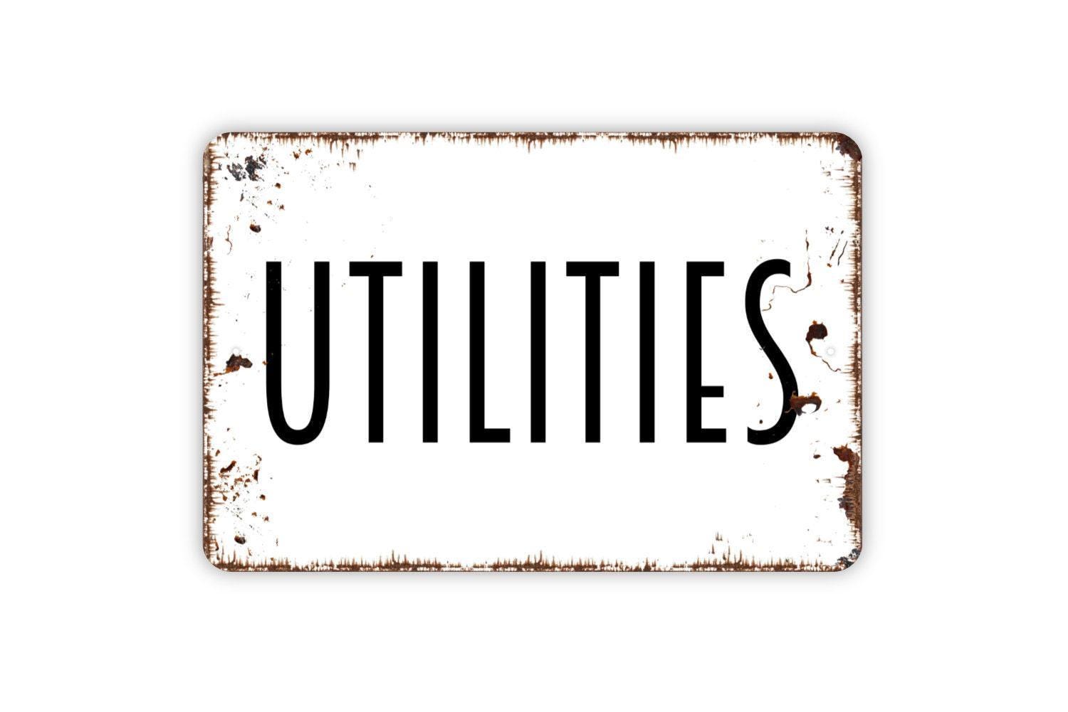 Utilities Sign | Rustic Farmhouse Wall Decor | Laundry Room or Garage Sign | Custom Metal Sign or Vinyl Sticker | Country Home Wall Art