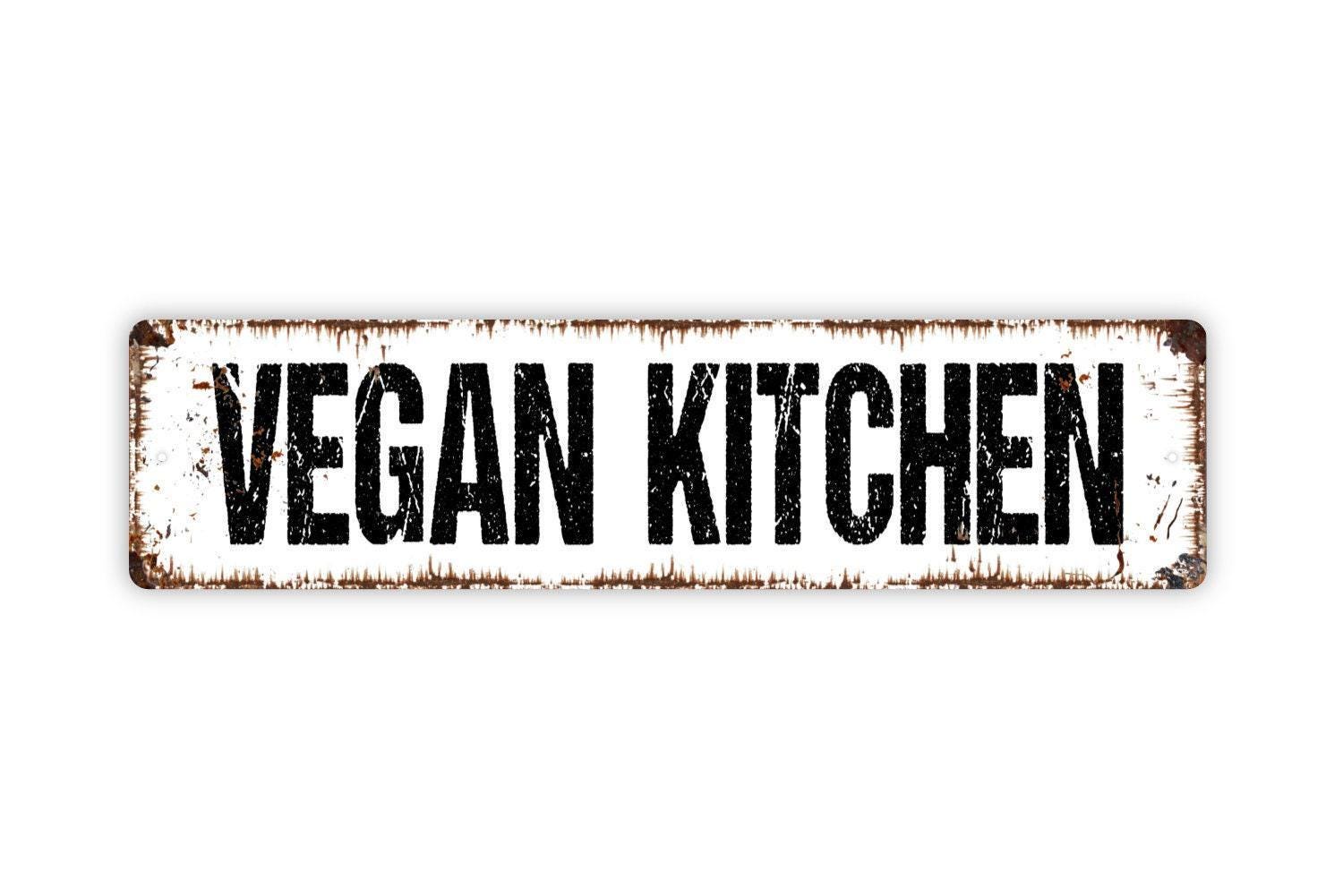 Vegan Kitchen Sign - No Meat No Dairy Kitchen Cafe Pantry Vinyl Sticker Or Street Metal Sign or Door Name Plate Plaque