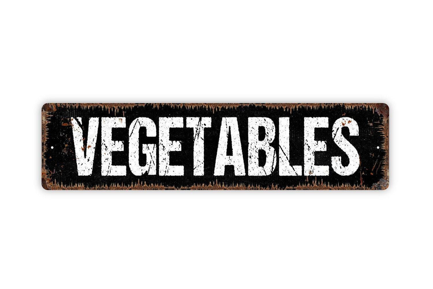 Vegetables Sign - Garden Marker Produce Farmers Market Vinyl Sticker Or Street Metal Sign or Door Name Plate Plaque