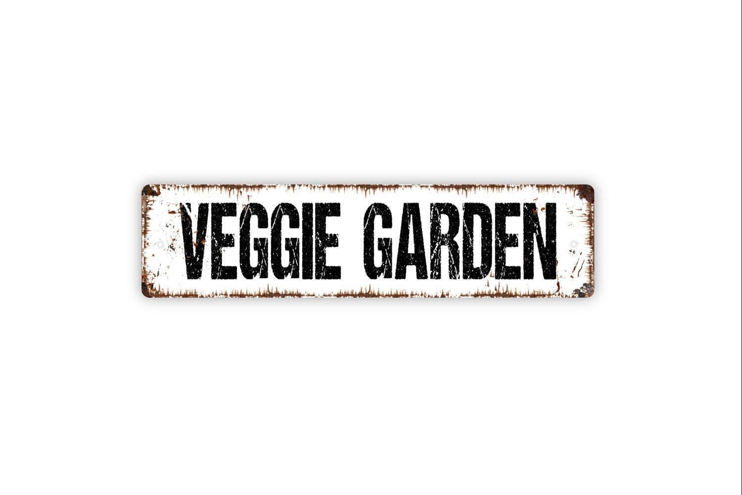 Veggie Garden Sign - Vegetables Garden Marker Produce Farmers Market Vinyl Sticker Or Street Metal Sign or Door Name Plate Plaque