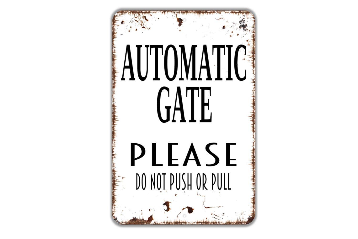 Vertical Automatic Gate Please Do Not Push Or Pull Sign - Metal Indoor or Outdoor Wall Art