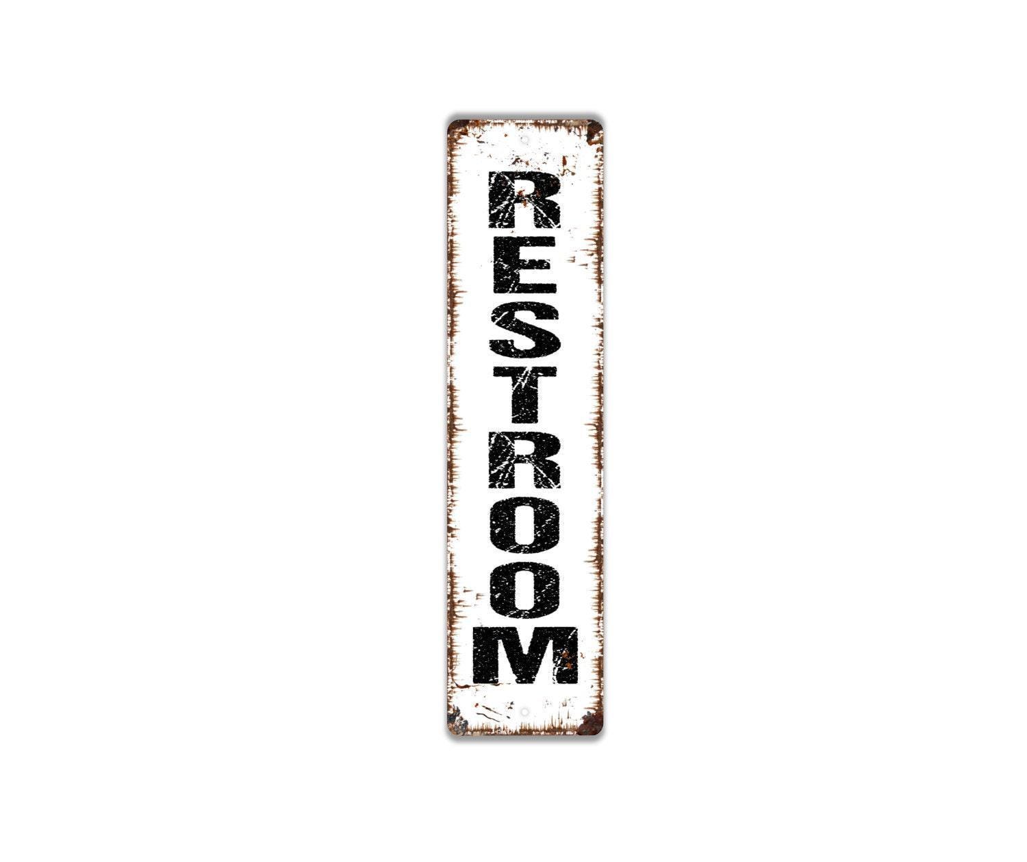 Vertical Restroom Sign - Bathroom Bath House Restroom Outdoor Or Indoor Vinyl Sticker Or Street Metal Sign or Door Name Plate Plaque
