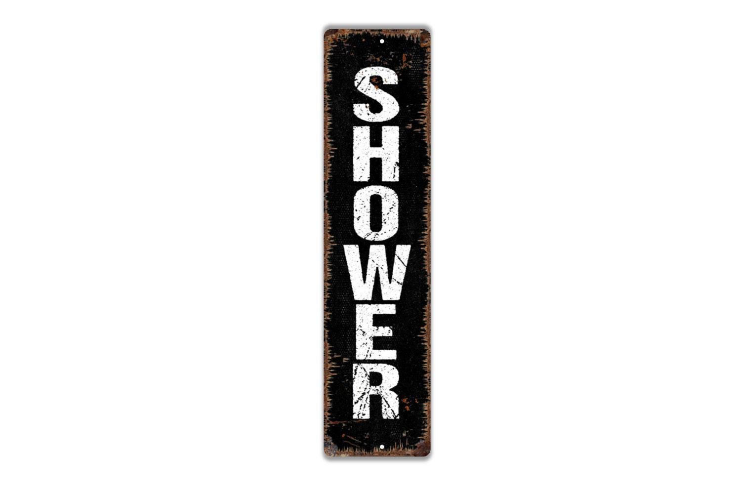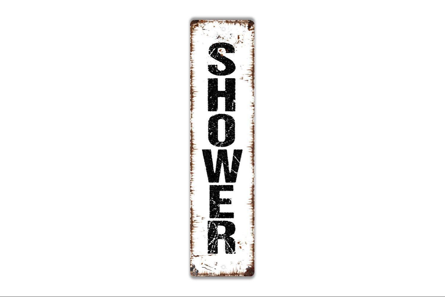 Vertical Shower Sign - Bathroom Bath House Restroom Outdoor Or Indoor Vinyl Sticker Or Street Metal Sign or Door Name Plate Plaque