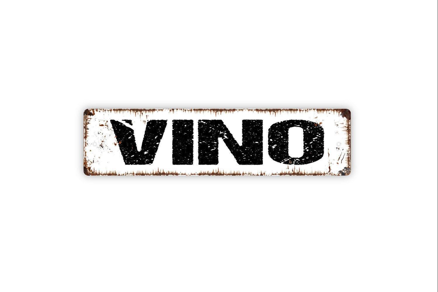 Vino Sign - Wine Cellar Kitchen Pantry Winery Vineyard Vinyl Sticker Or Street Metal Sign or Door Name Plate Plaque