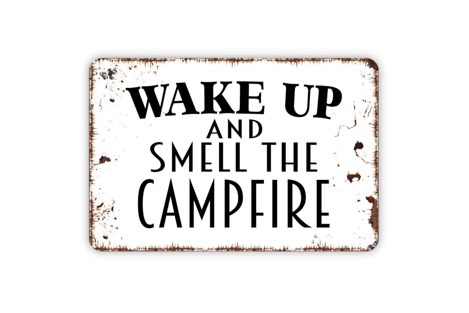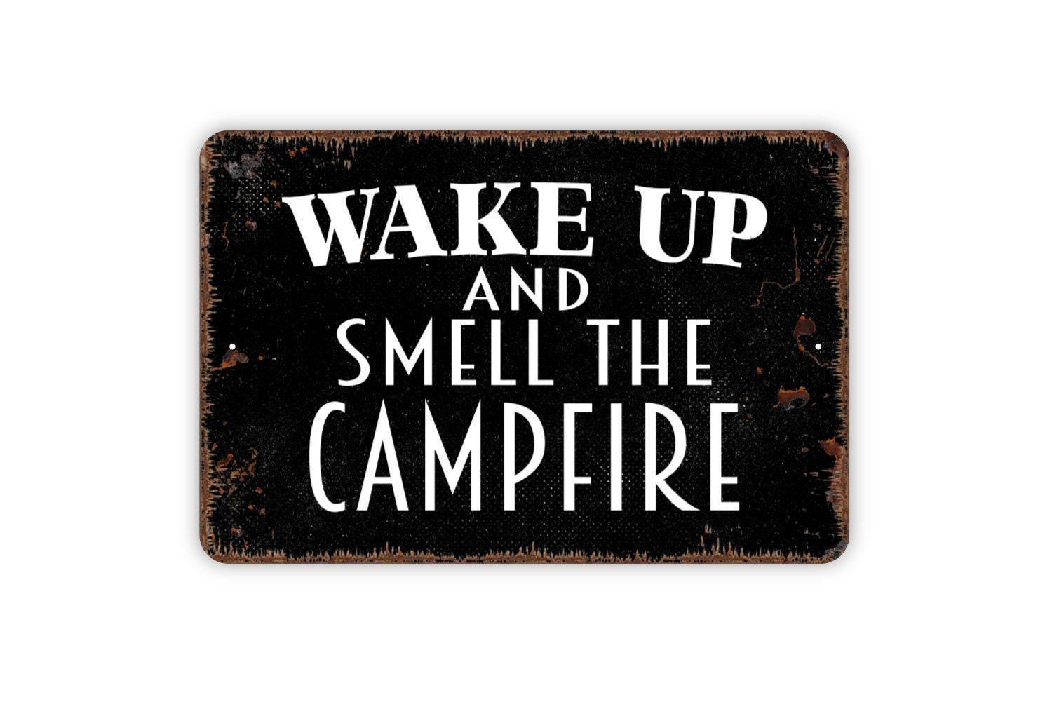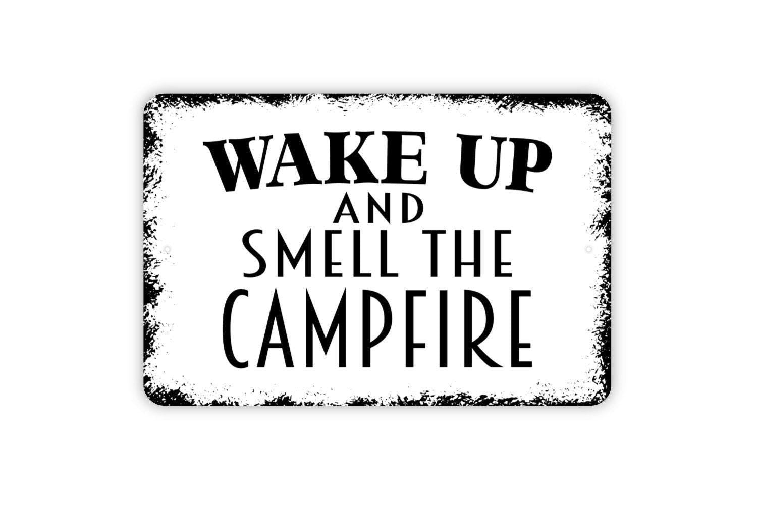 Wake Up And Smell The Campfire Sign - Funny Camping Indoor or Outdoor Metal Wall Art
