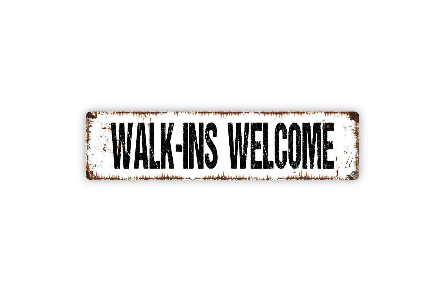 Walk-Ins Welcome Sign - Office Salon Barber Shop Hair Stylist Vinyl Sticker Or Metal Street Sign or Door Name Plate Plaque