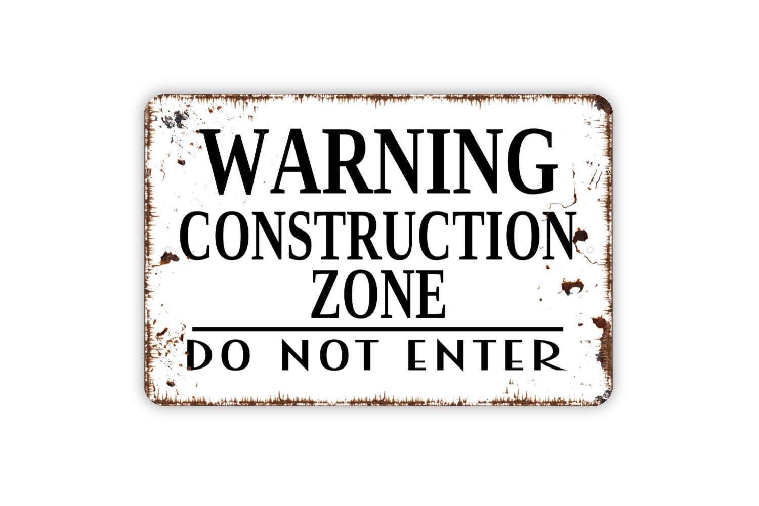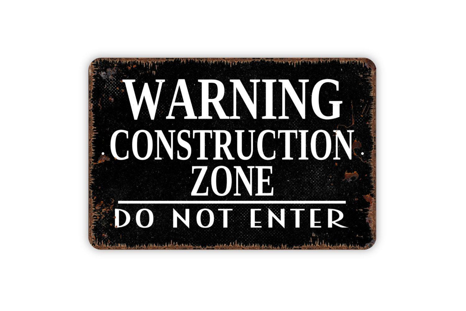 Warning Construction Zone Do Not Enter Sign | Rustic Safety Wall Decor | Custom Metal Sign or Vinyl Sticker | Workplace or Yard Sign