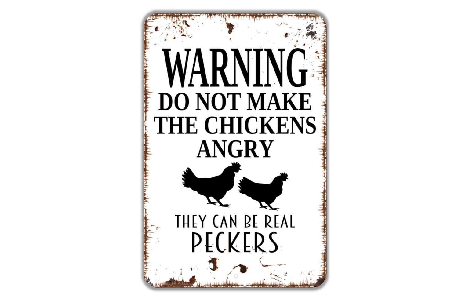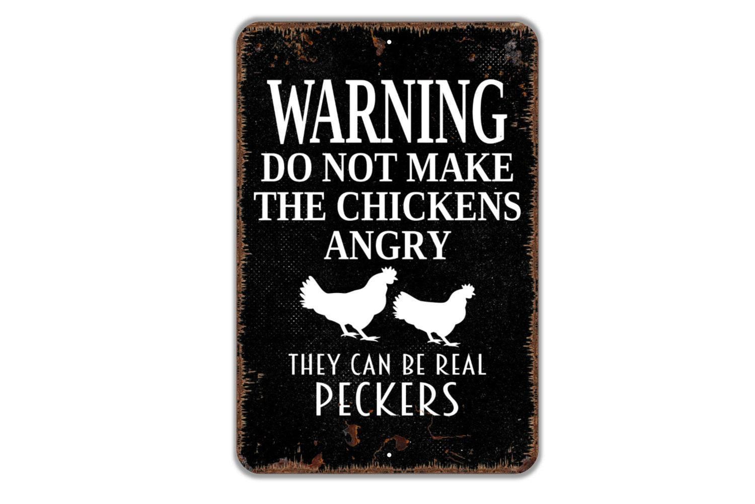 Warning Do Not Make The Chickens Angry They Can Be Real Peckers Sign - Funny Farm Metal Indoor or Outdoor Wall Art