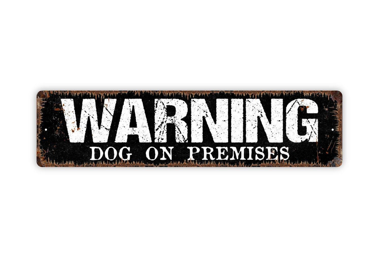 Warning Dog On Premises Sign - Vinyl Sticker Or Metal Street Sign or Door Name Plate Plaque