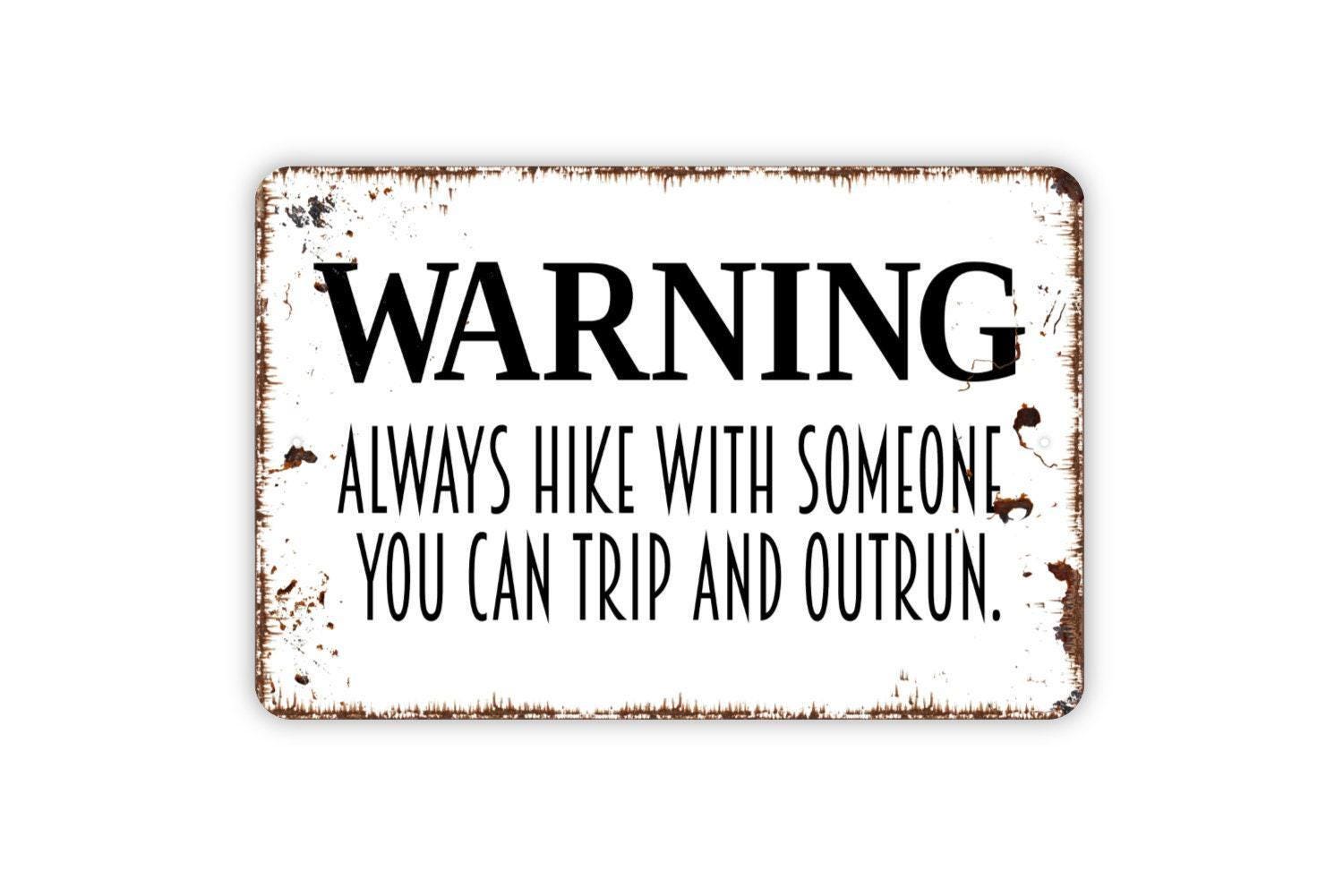 Warning Hiking Rules Always Hike With Someone You Can Trip and Outrun Sign - Funny Hiking Trail Metal Art