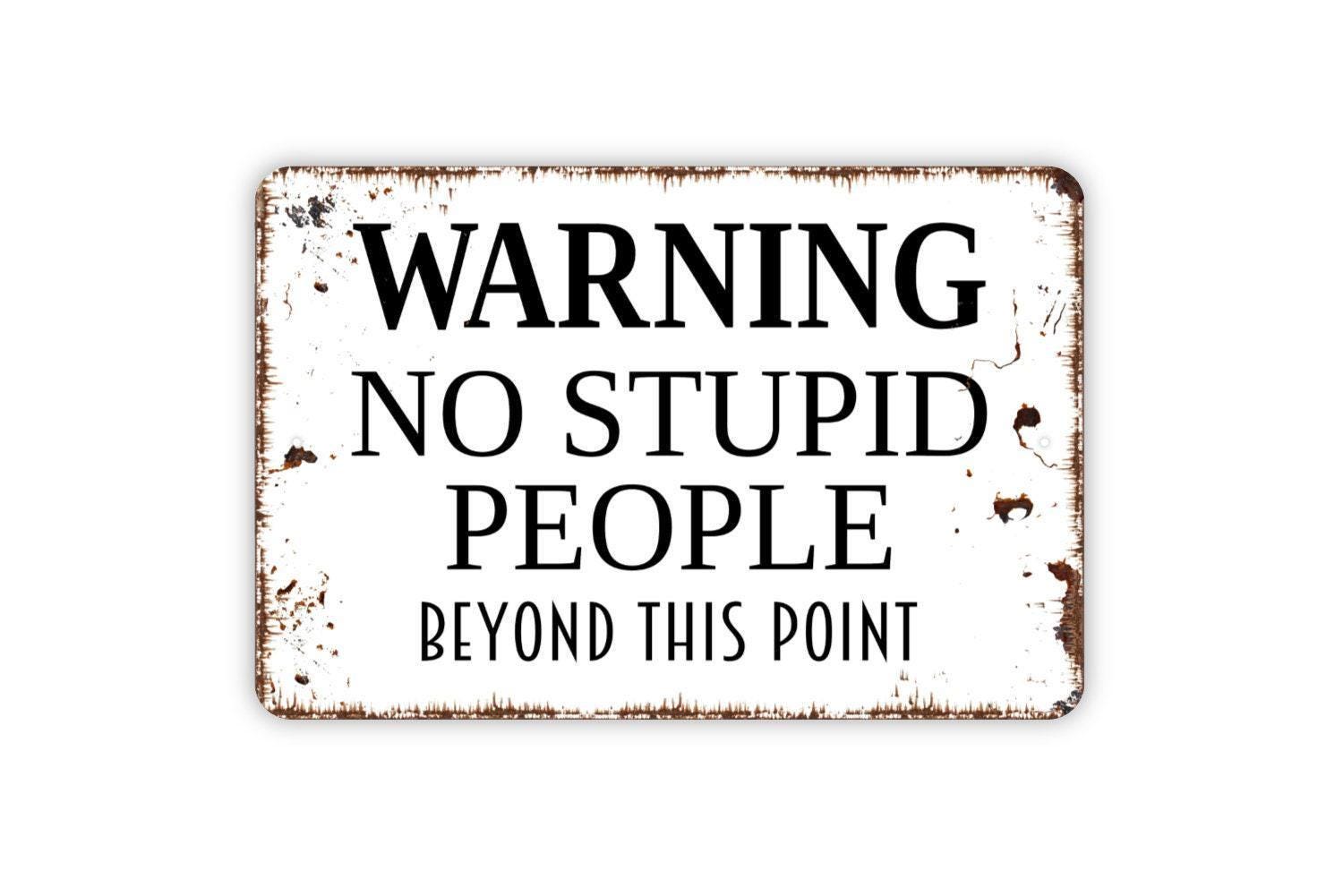 Warning No Stupid People Beyond This Point Sign - Metal Wall Art - Indoor or Outdoor