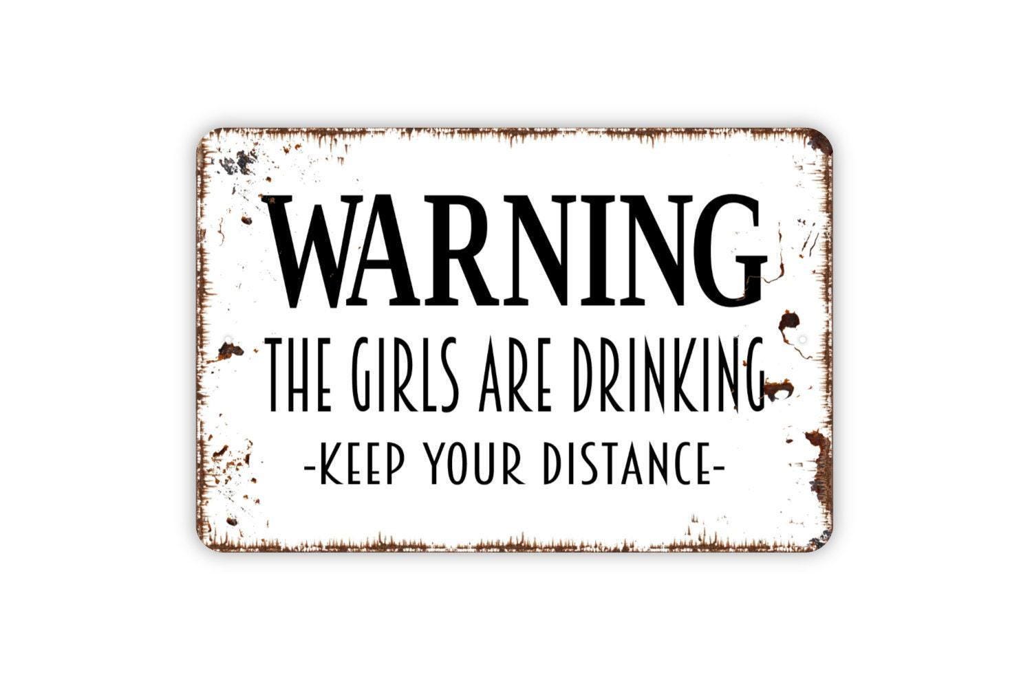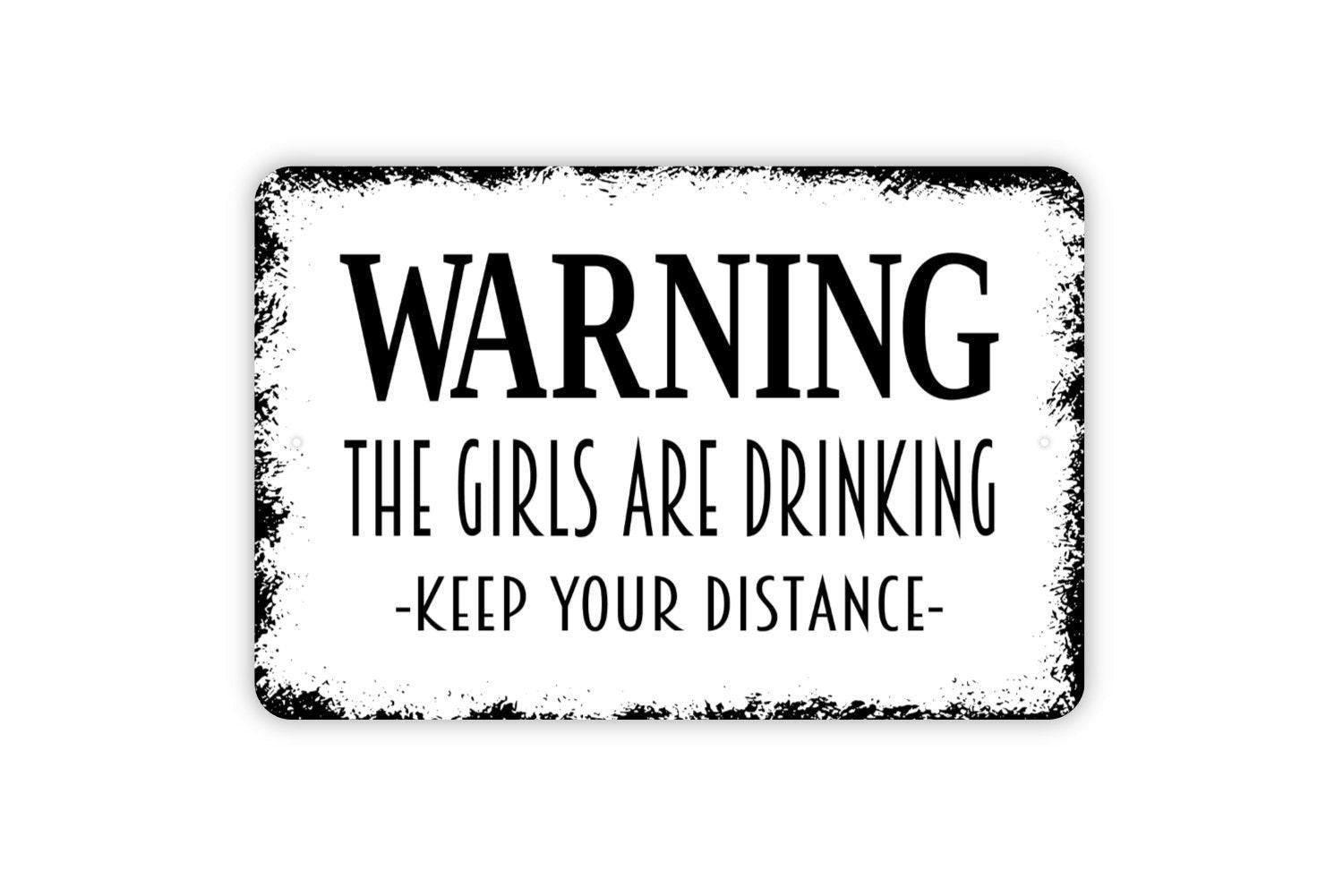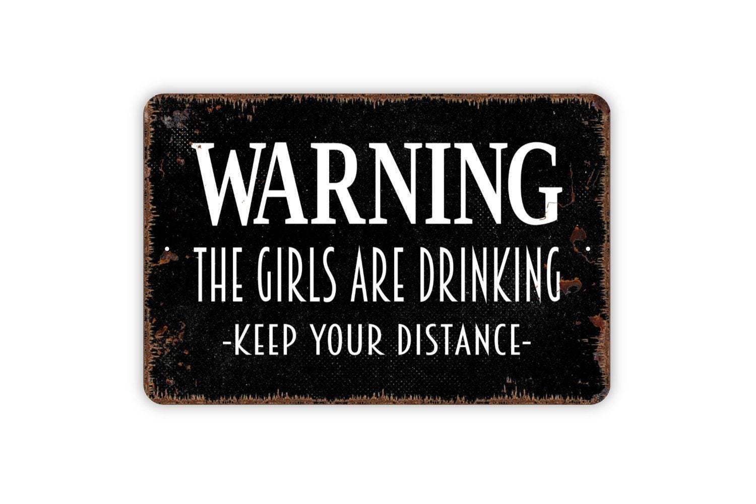 Warning The Girls Are Drinking Keep Your Distance Sign - Funny Bar Indoor or Outdoor Metal Wall Art