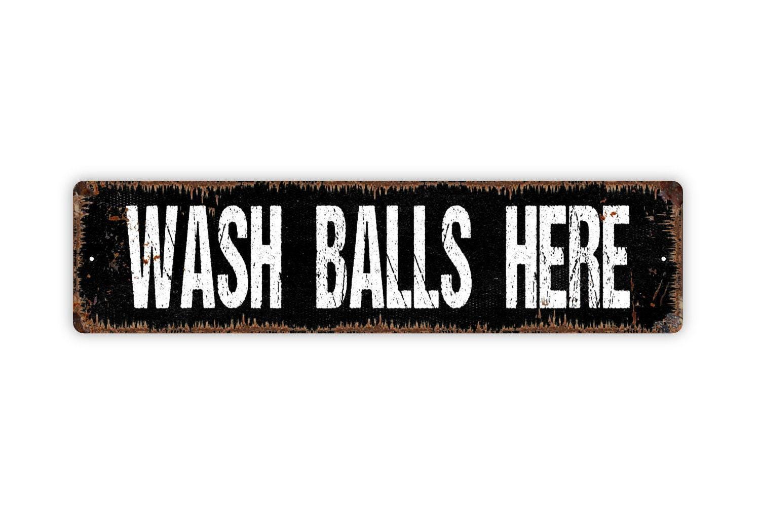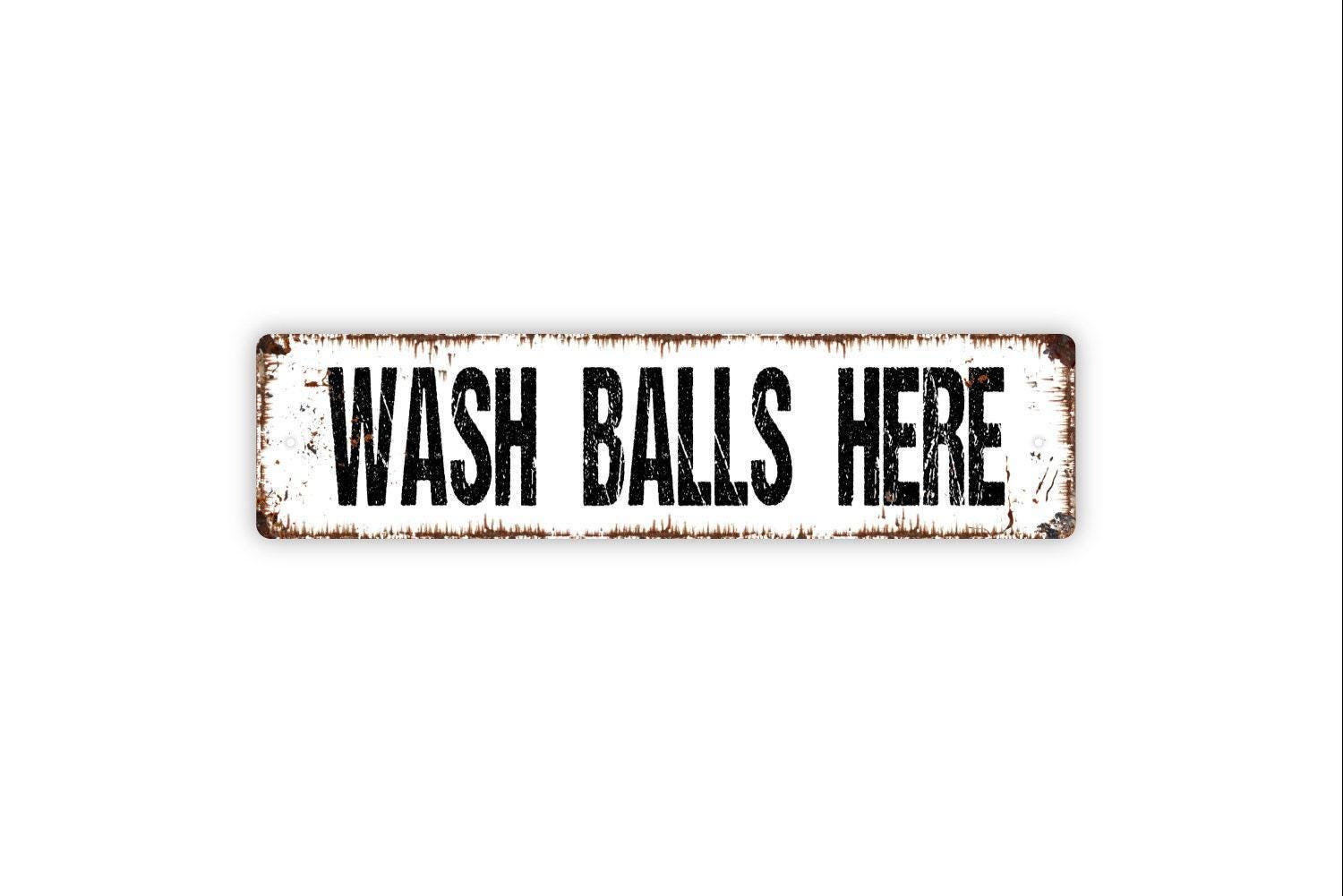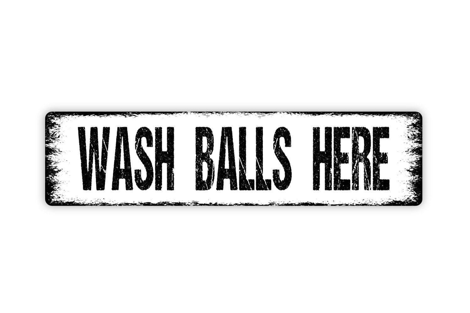 Wash Balls Here Sign - Funny Bathroom Golfing Golfer Ball Restroom Mens Boys Wash Room Rustic Street Metal Sign or Door Name Plate Plaque