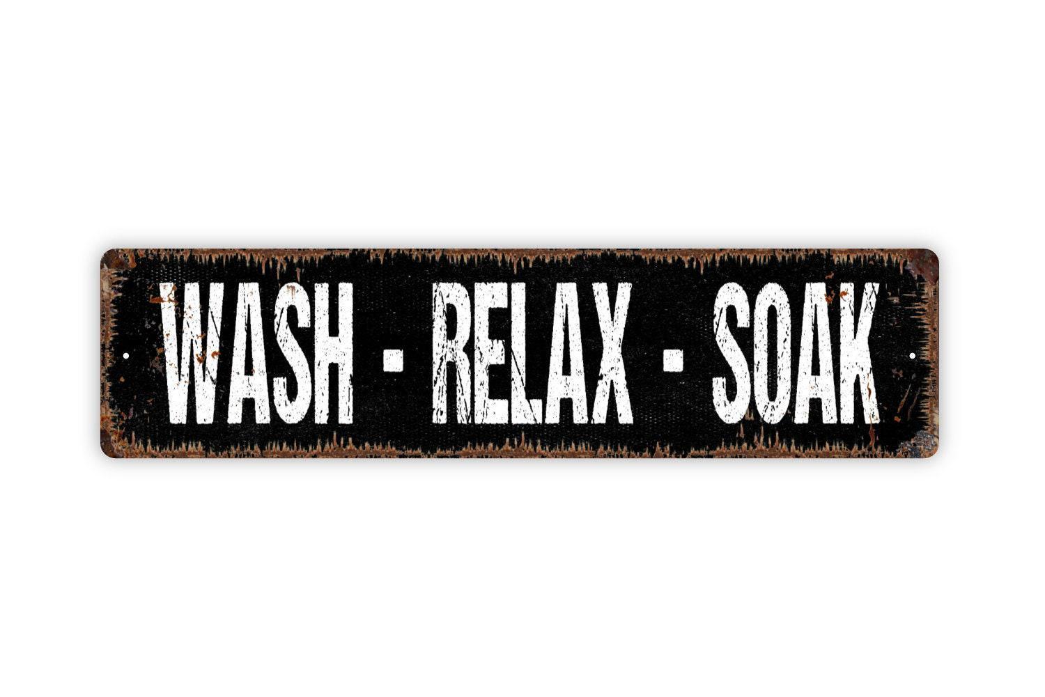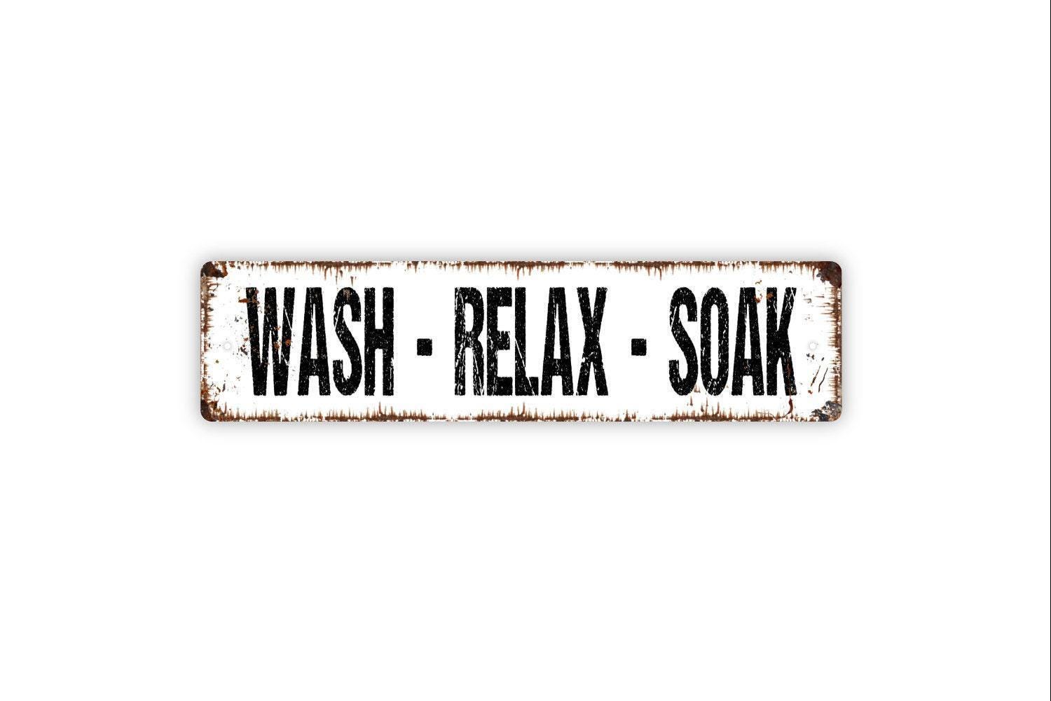 Wash Relax Soak Sign - Bathroom Hot Bath Tub Vinyl Sticker Or Street Metal Sign or Door Name Plate Plaque