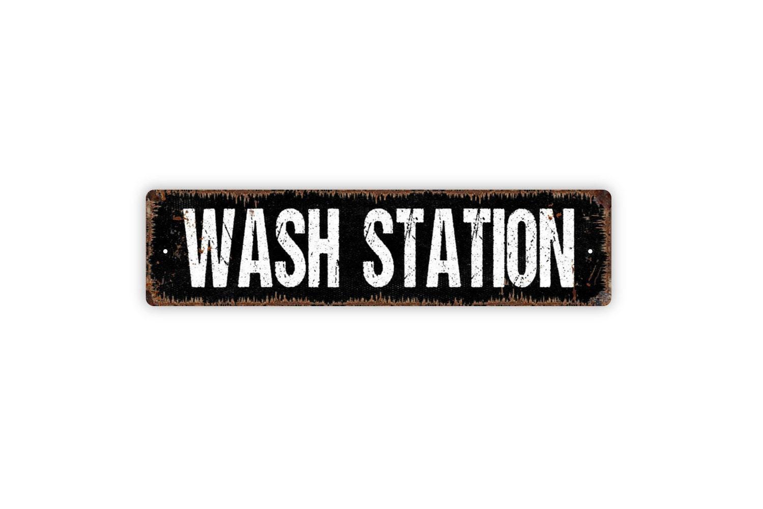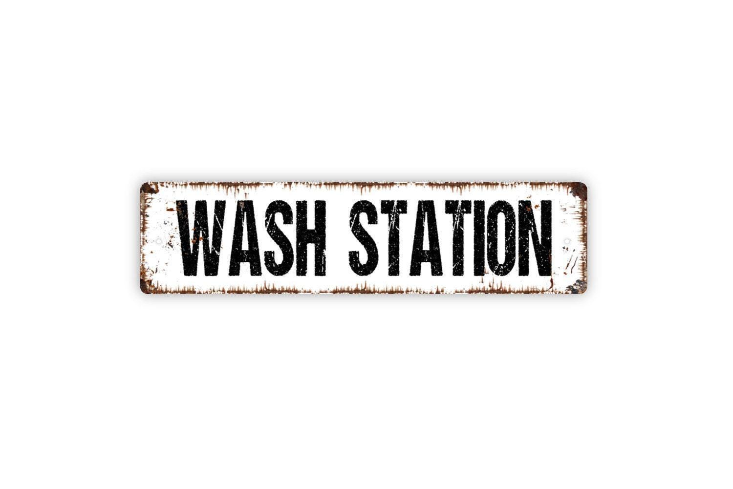 Wash Station Sign – Hand Washing Wall Decor – Bathroom, Kitchen, or Workplace Safety Sign – Metal Sign or Vinyl Sticker
