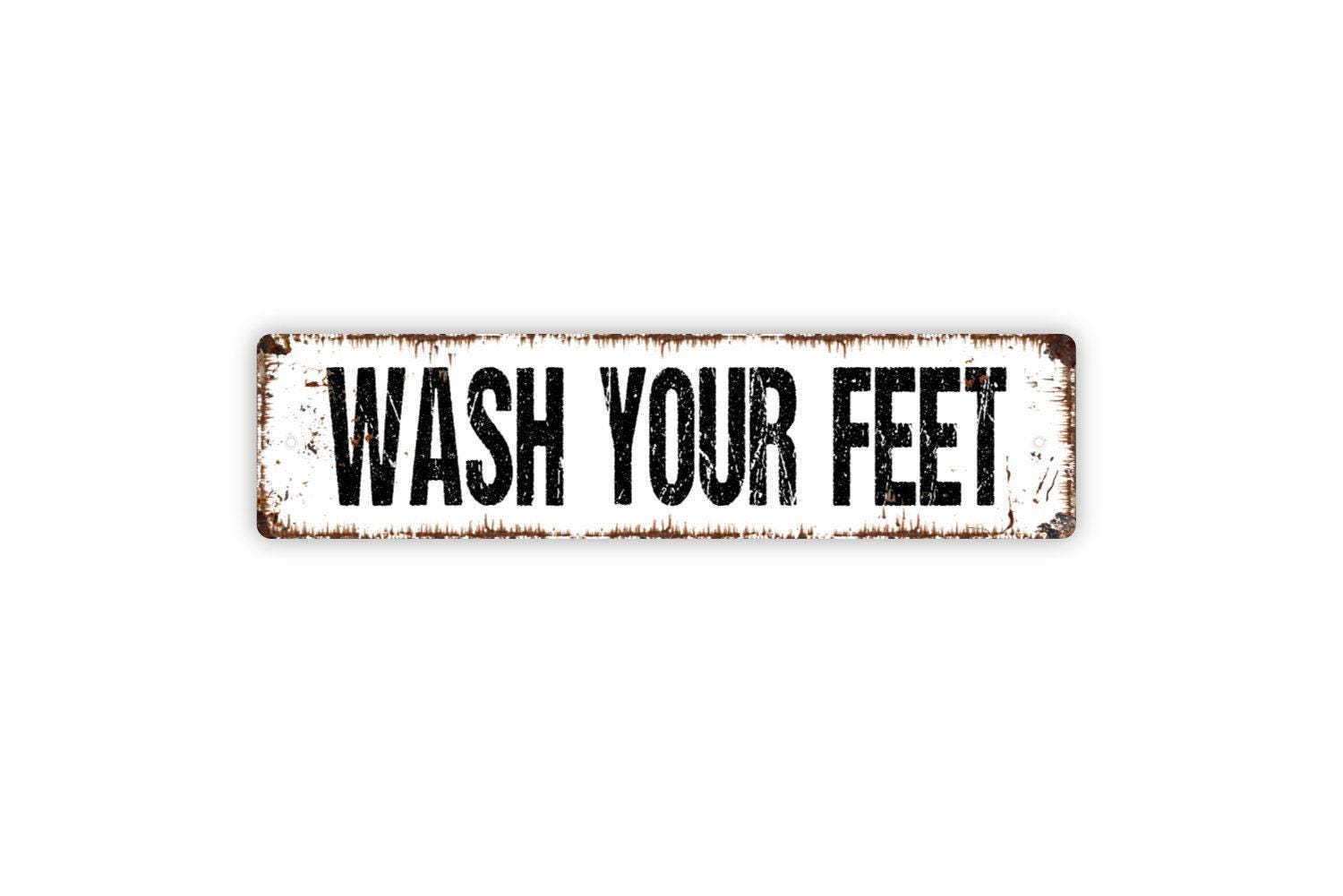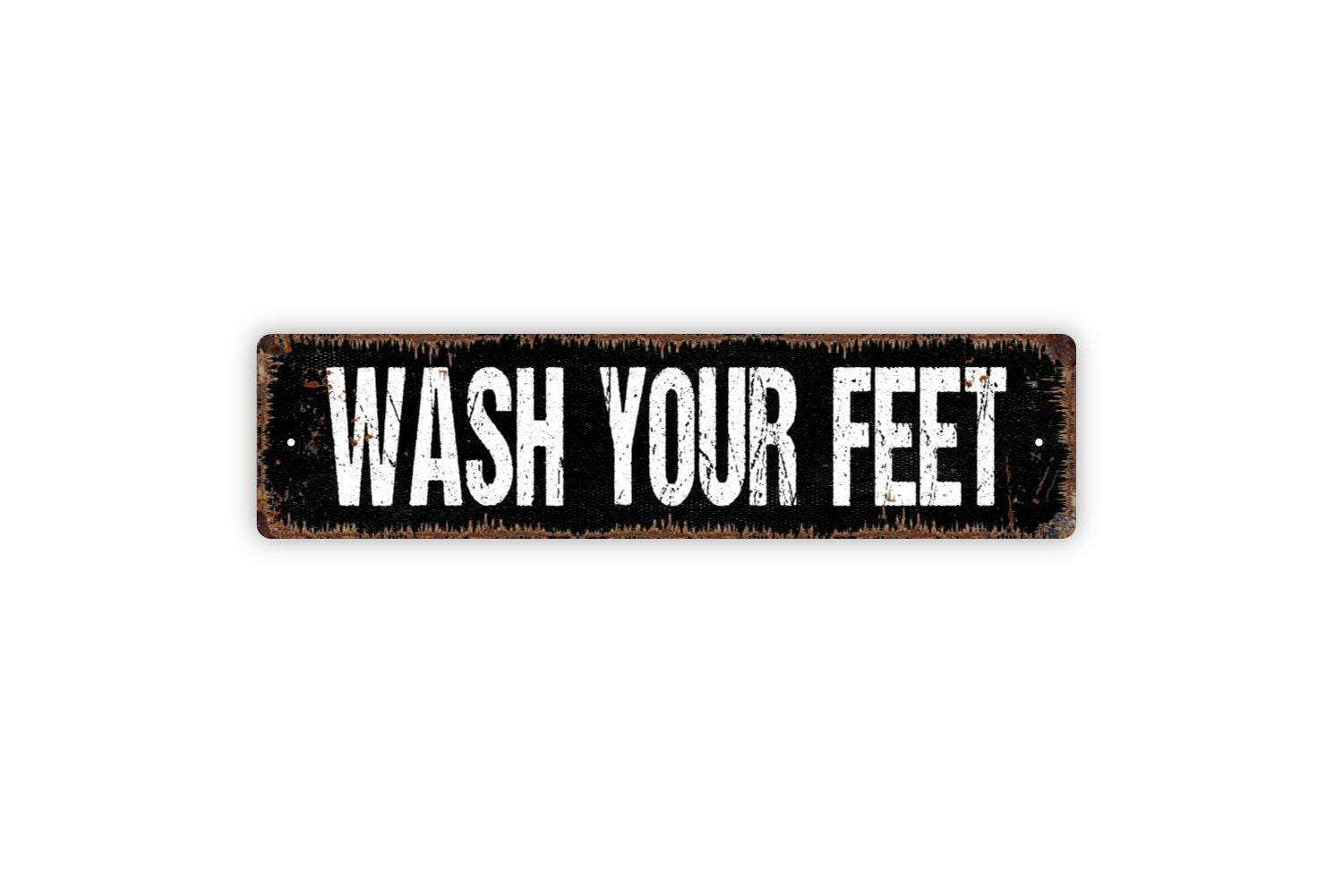 Wash Your Feet Sign - Vinyl Sticker Or Metal Street Sign or Door Name Plate Plaque