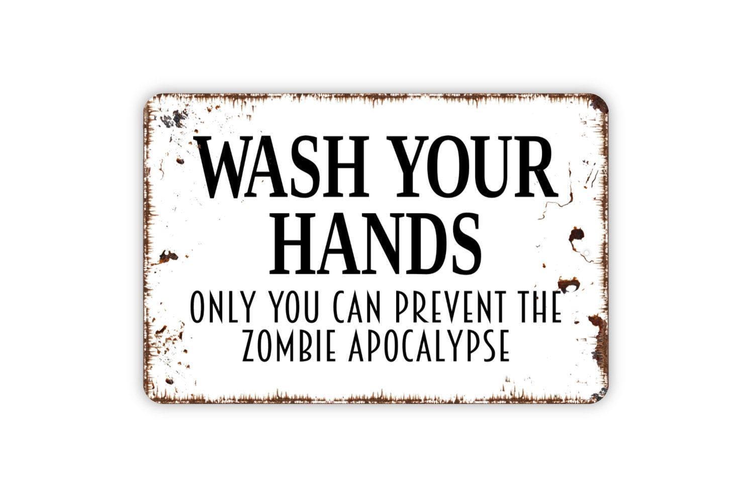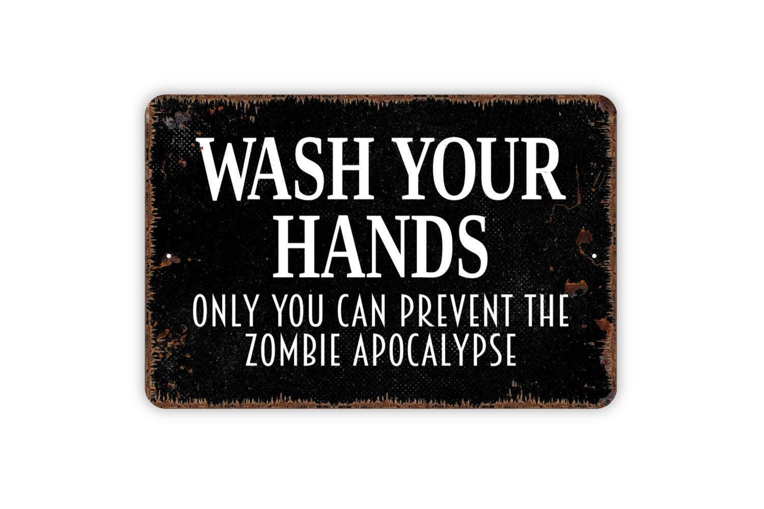 Wash Your Hands Only You Can Prevent The Zombie Apocalypse Sign - Bathroom Restroom Indoor Or Outdoor Metal Wall Art