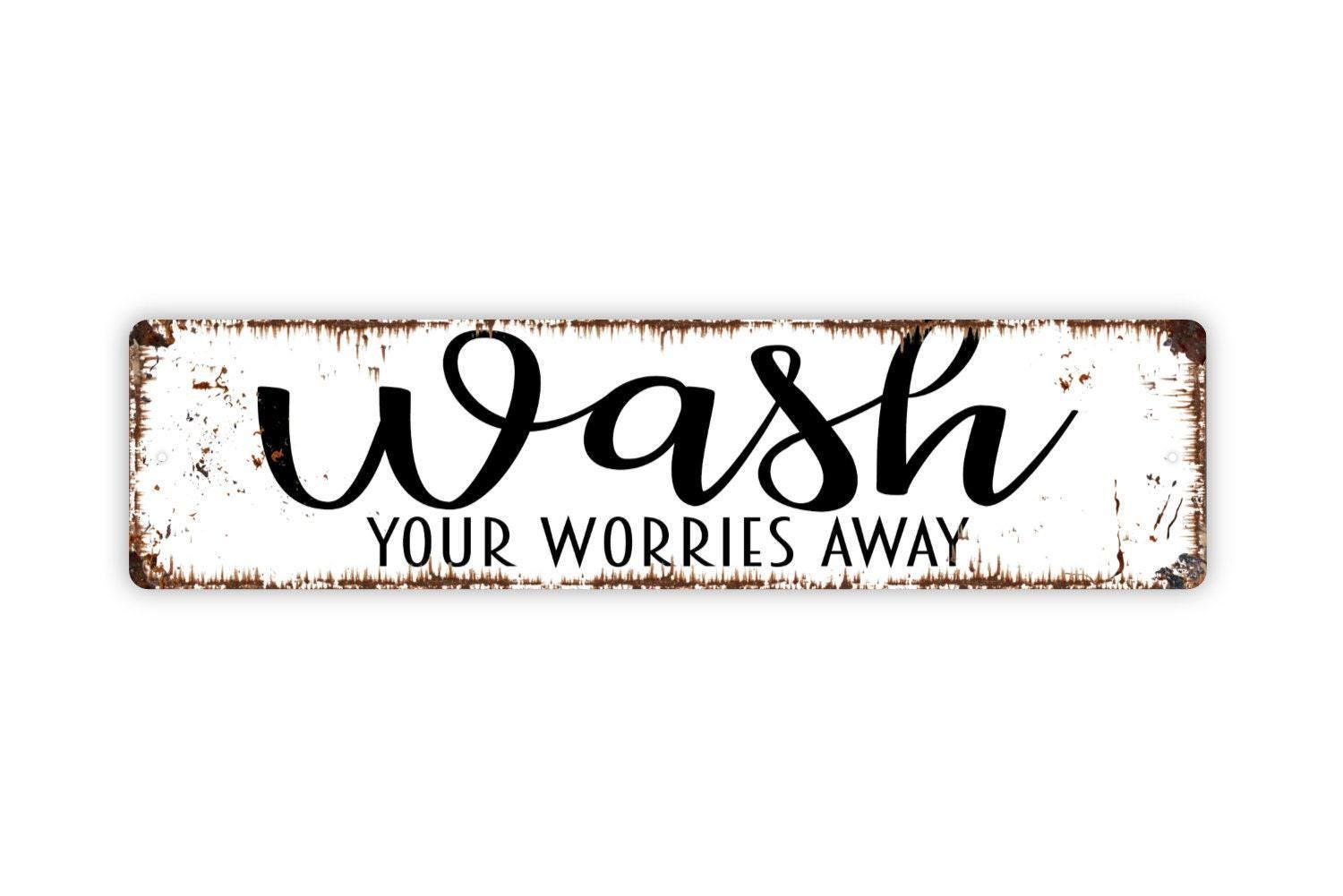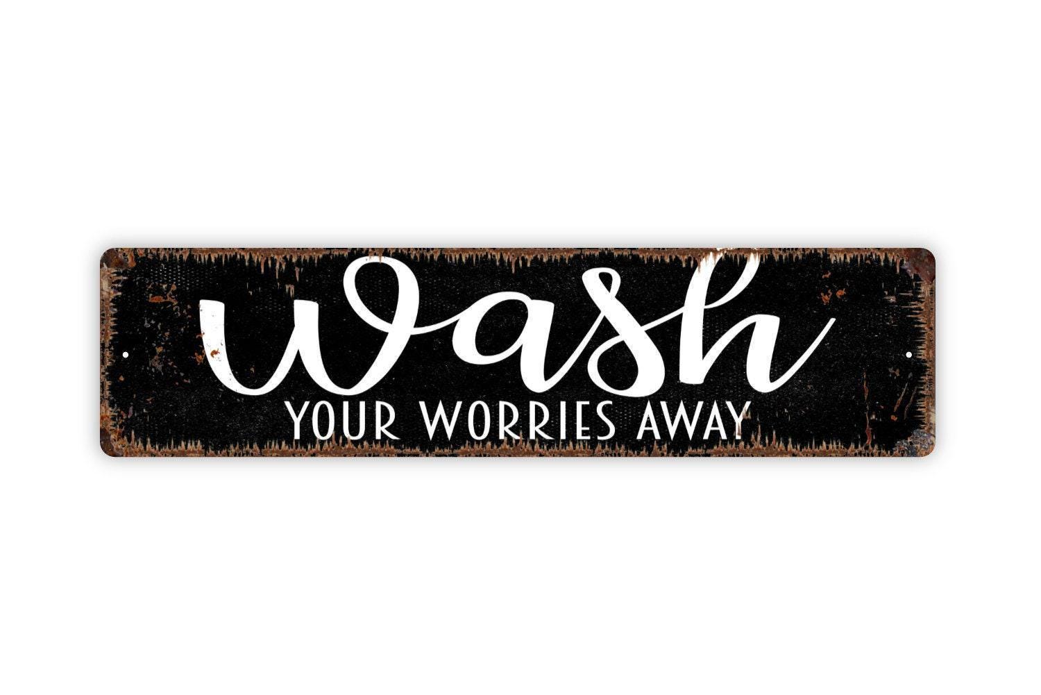 Wash Your Worries Away Sign - Bathroom Restroom Custom Vinyl Sticker Or Street Metal Sign or Door Name Plate Plaque