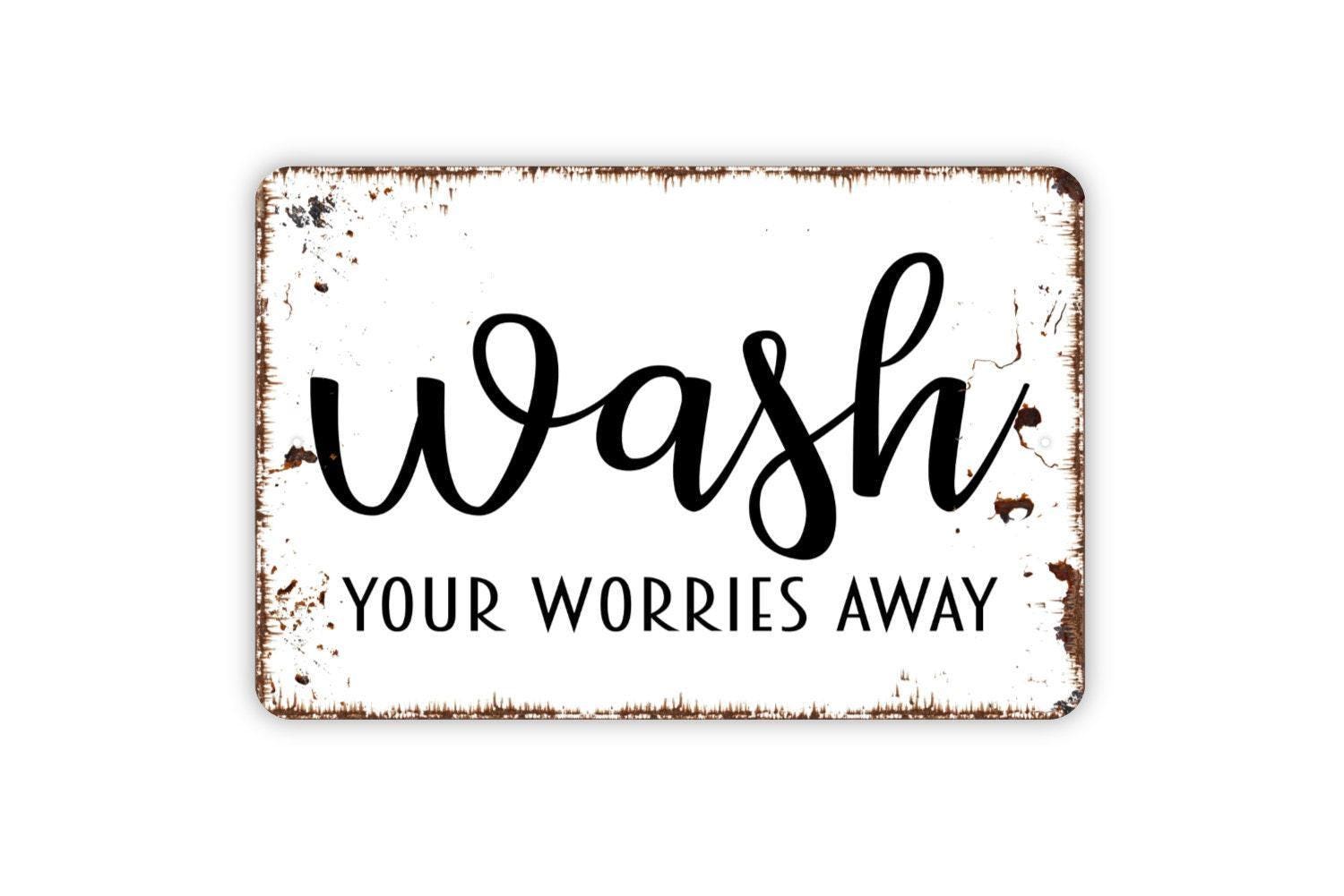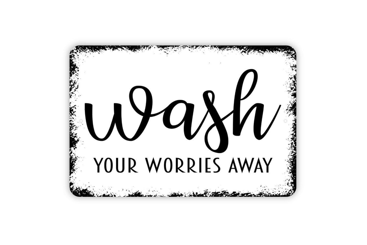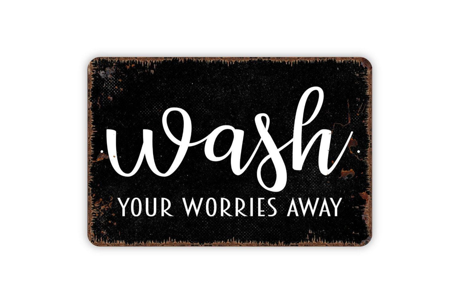 Wash Your Worries Away Sign - Funny Bathroom or Laundry Room Metal Indoor or Outdoor Wall Art