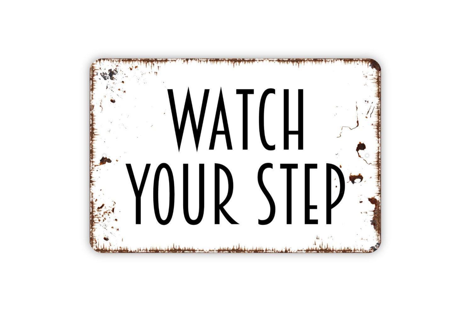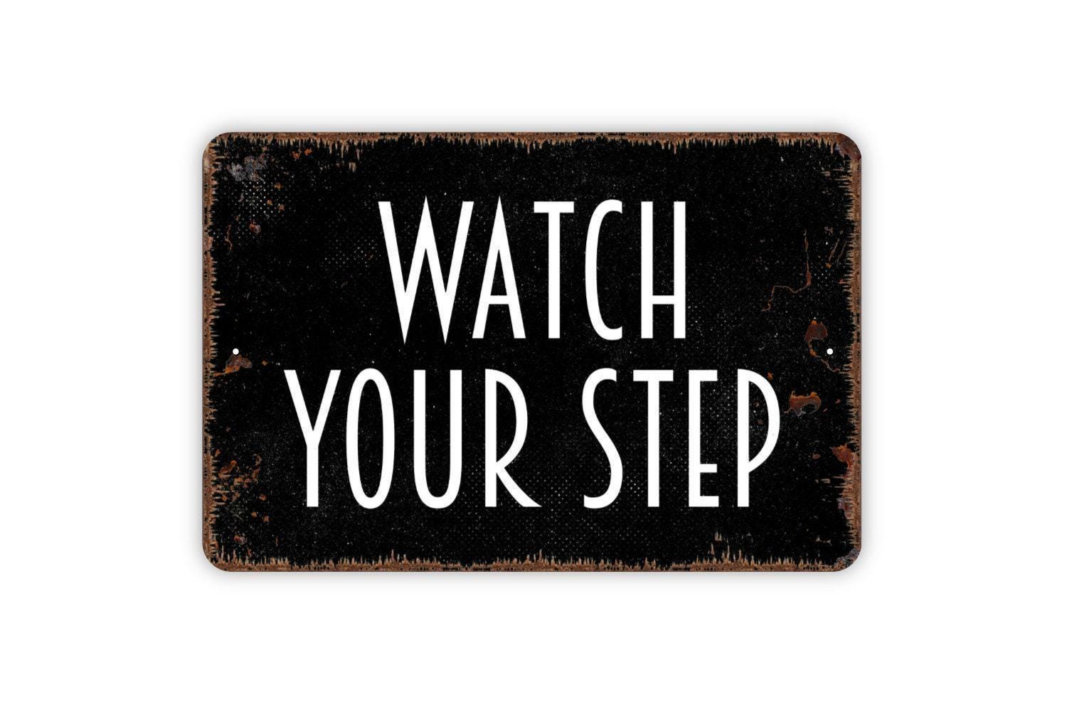 Watch Your Step Sign - Metal Indoor or Outdoor Wall Art