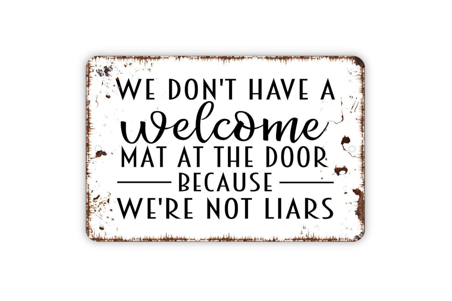 We Don't Have A Welcome Mat At The Door Because We're Not Liars Sign Metal or Vinyl Sticker | Funny Front Door Sign | Rustic Home Humor