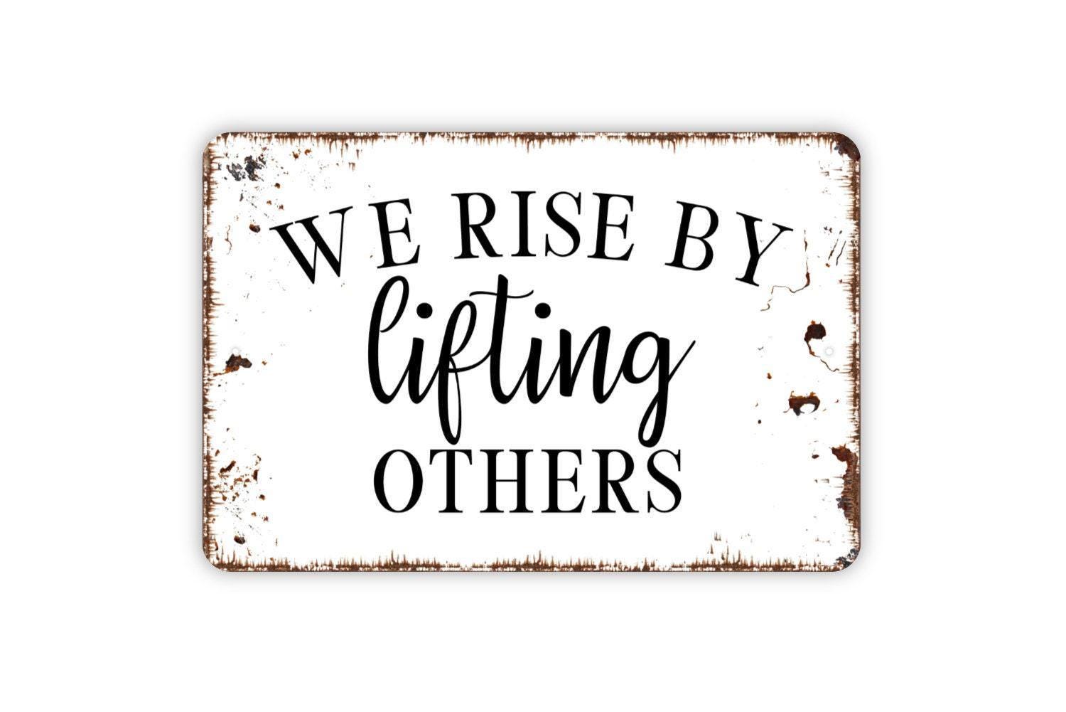 We Rise By Lifting Others Sign - Inspirational Metal Indoor or Outdoor Wall Art