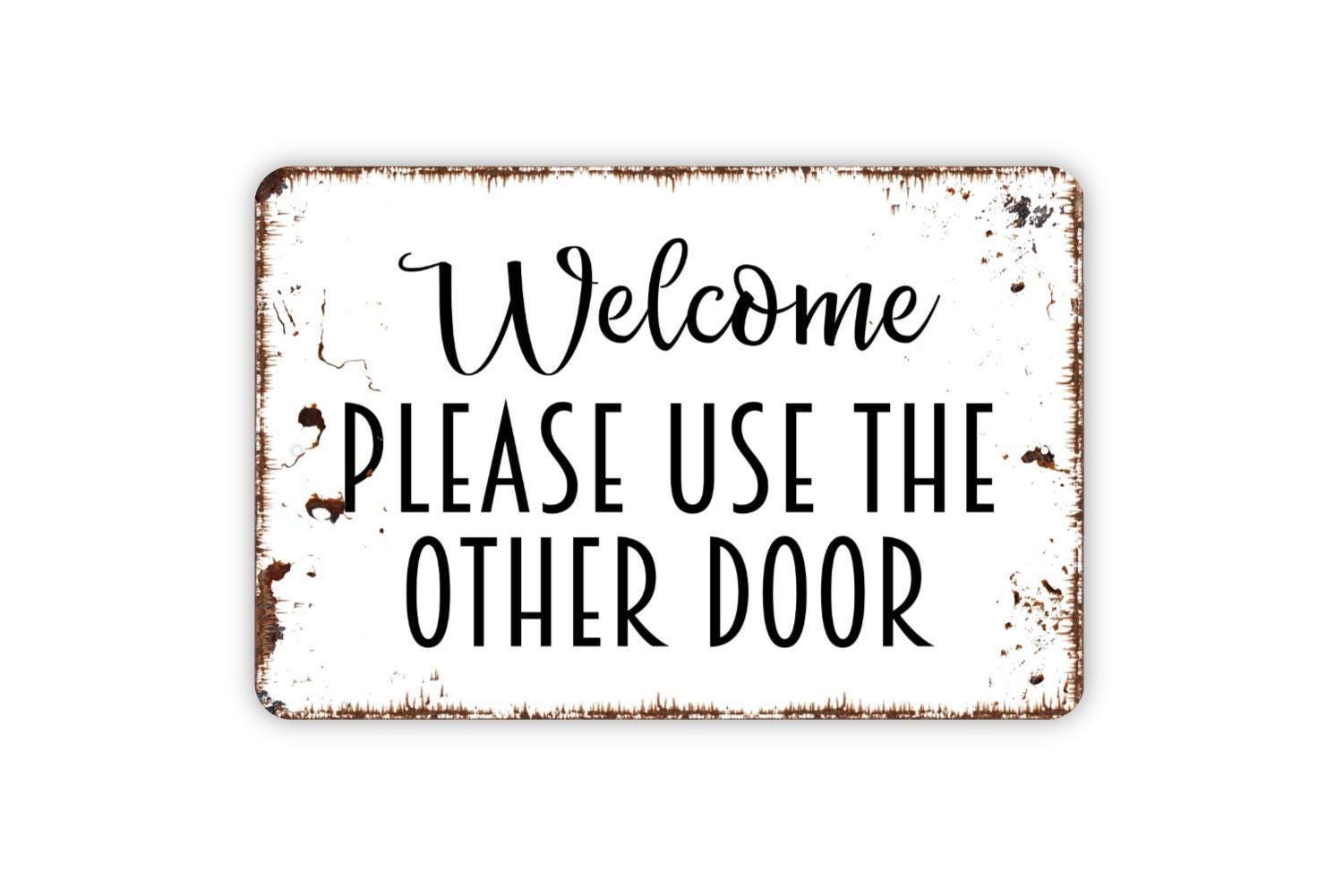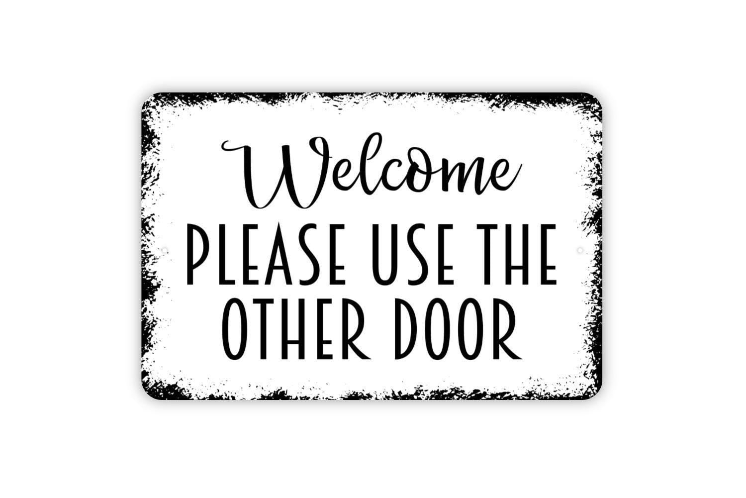 Welcome Please Use The Other Door Sign - Metal Wall Art - Indoor or Outdoor