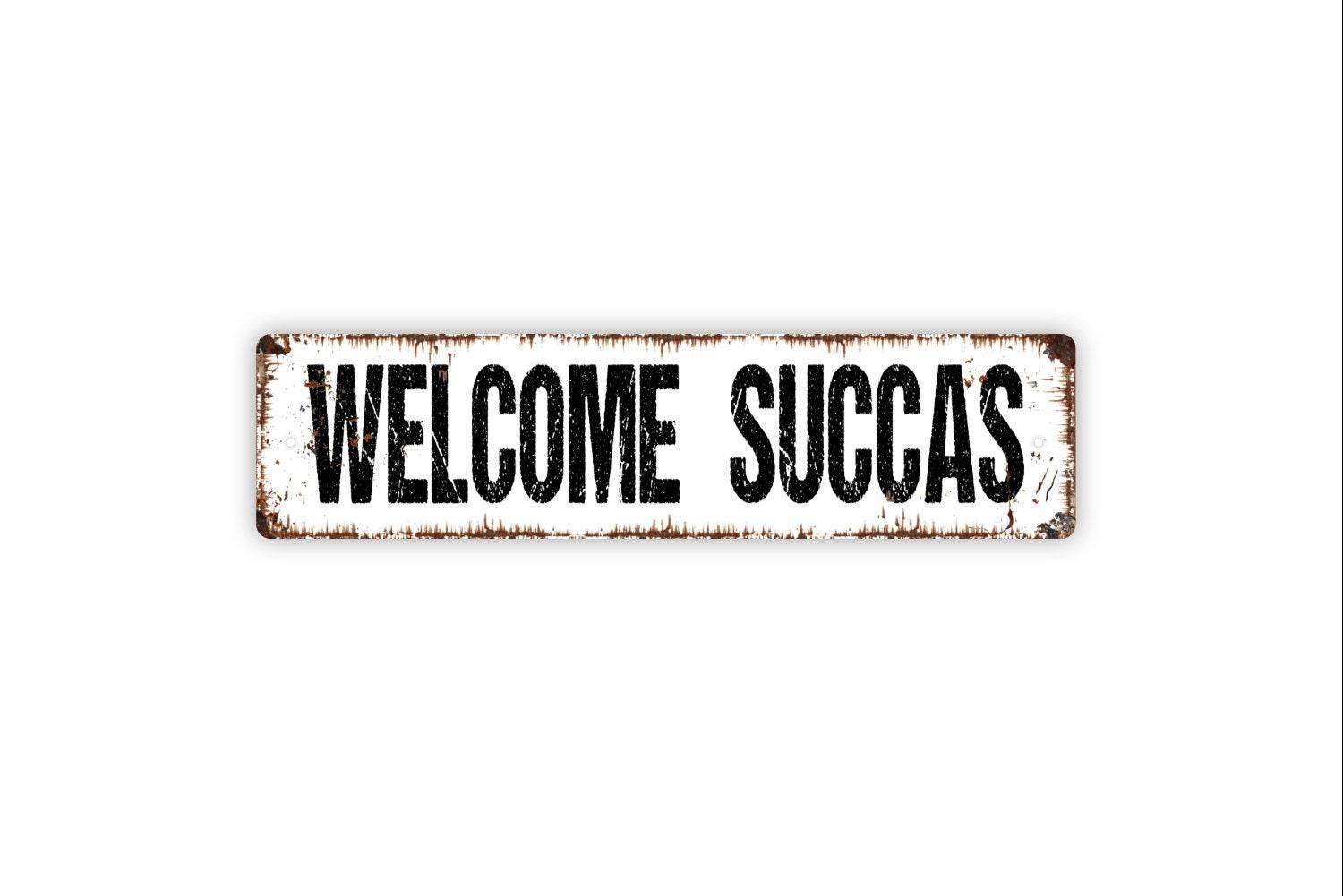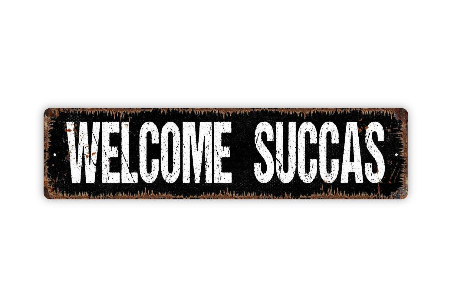 Welcome Succas Sign - Vinyl Sticker Or Metal Street Sign or Door Name Plate Plaque