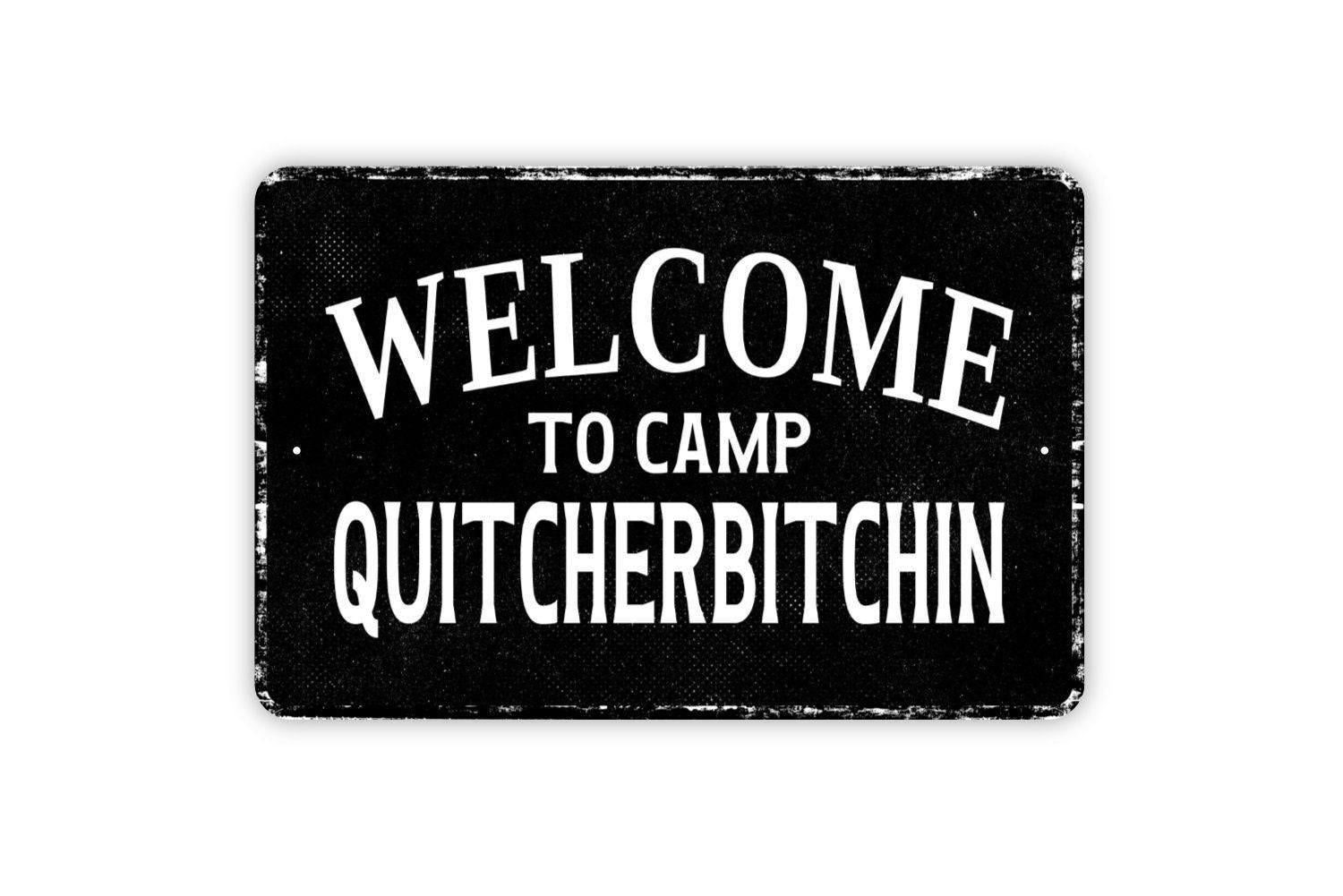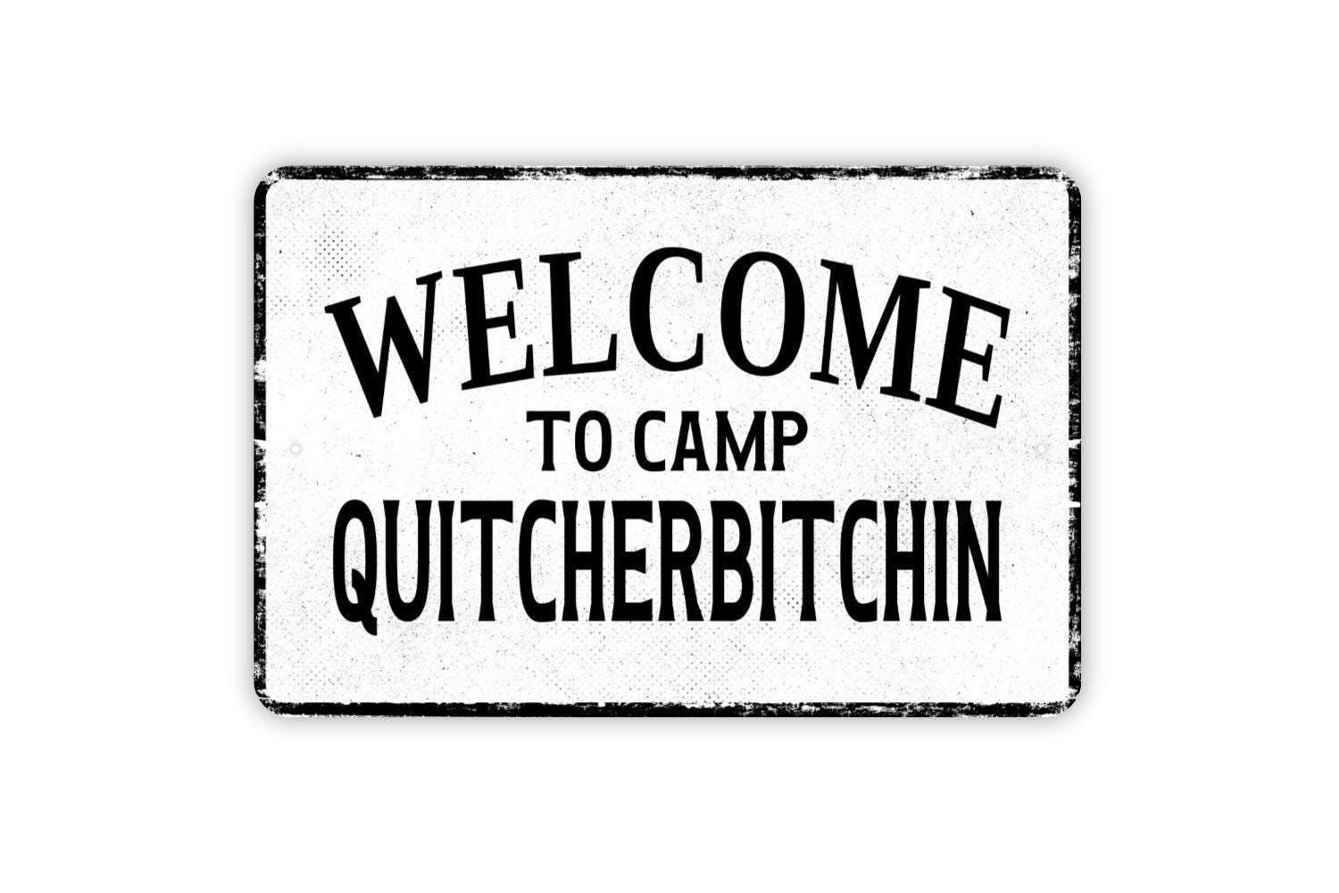 Welcome To Camp Quitcherbitchin Sign | Funny Cabin Lodge Wall Decor | Camping Outdoor Yard Wall Art | Vinyl Sticker or Metal Sign