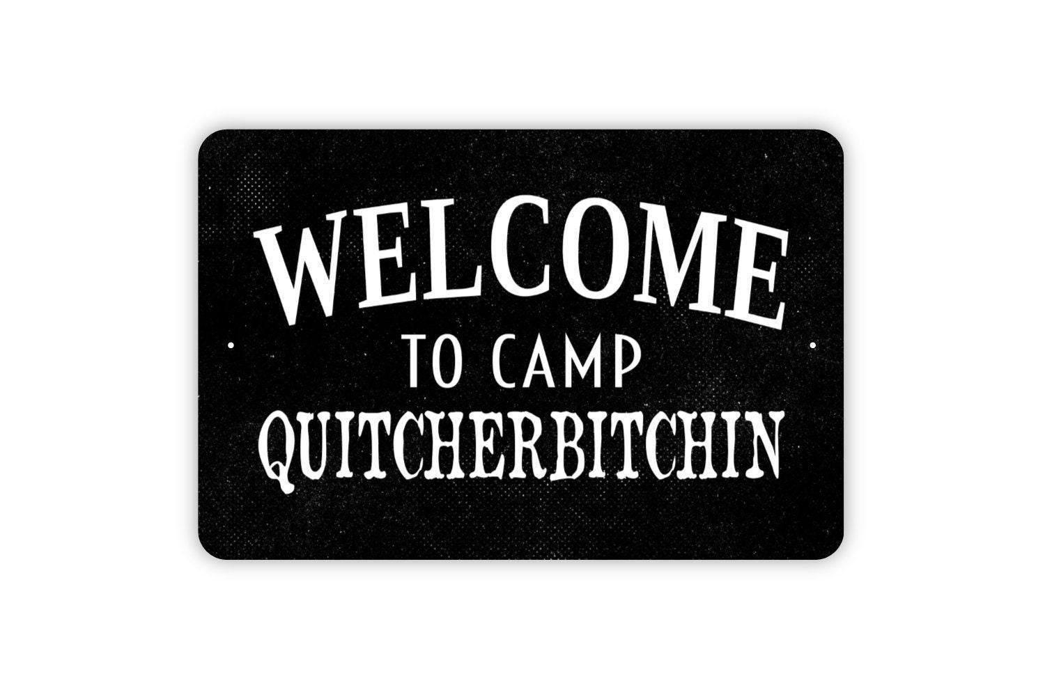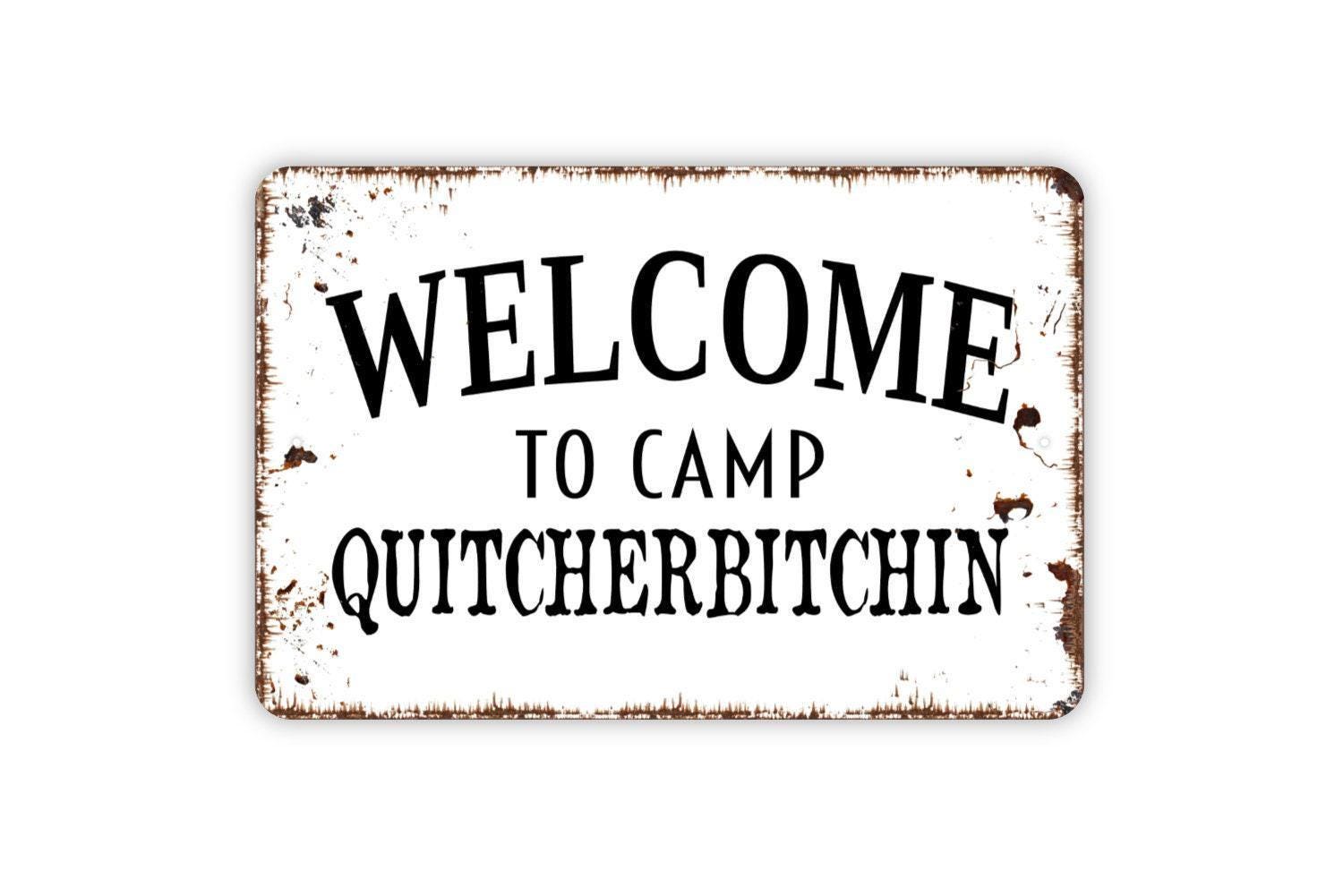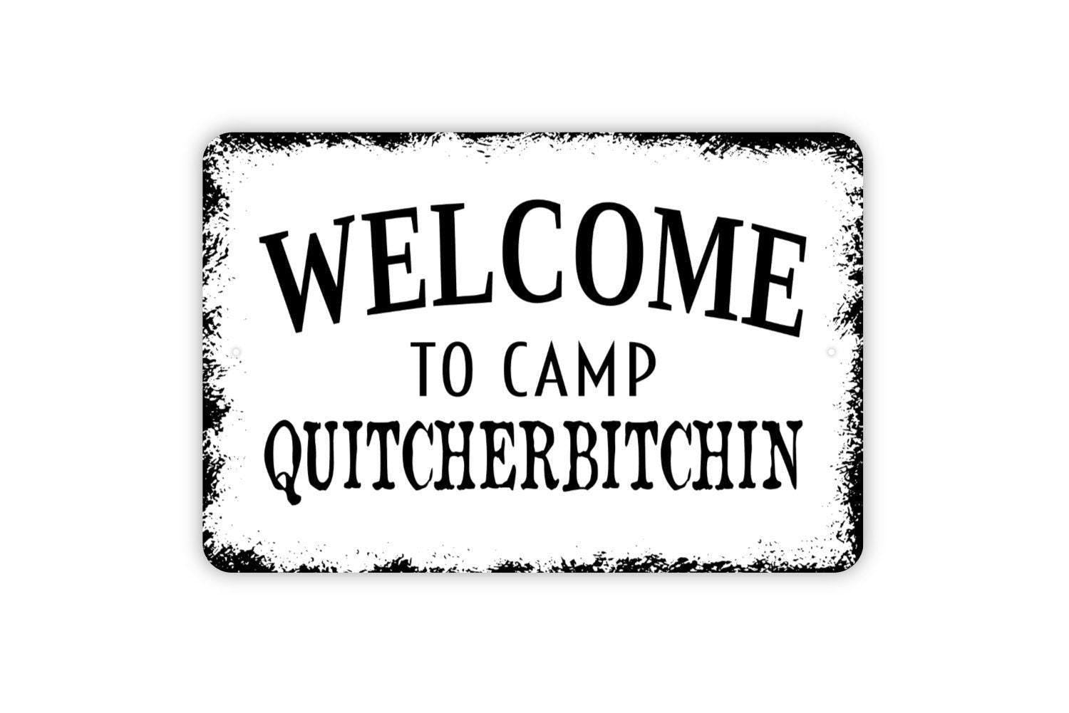 Welcome To Camp Quitcherbitchin Sign - Funny Camping Metal Indoor or Outdoor Wall Art
