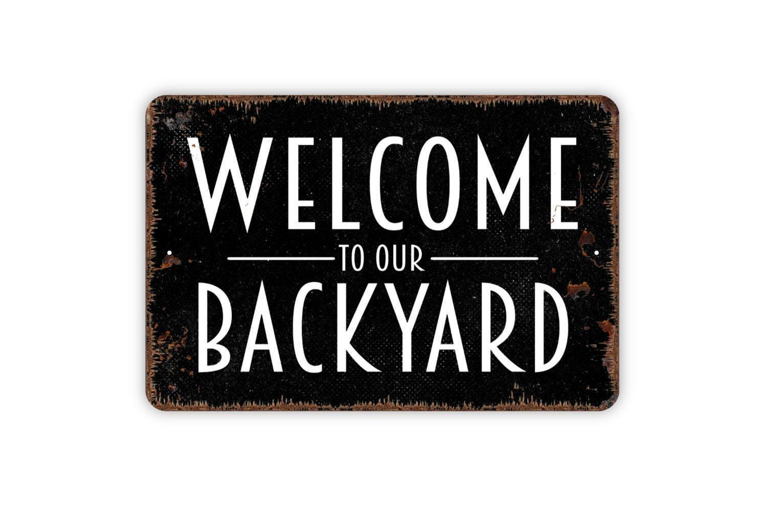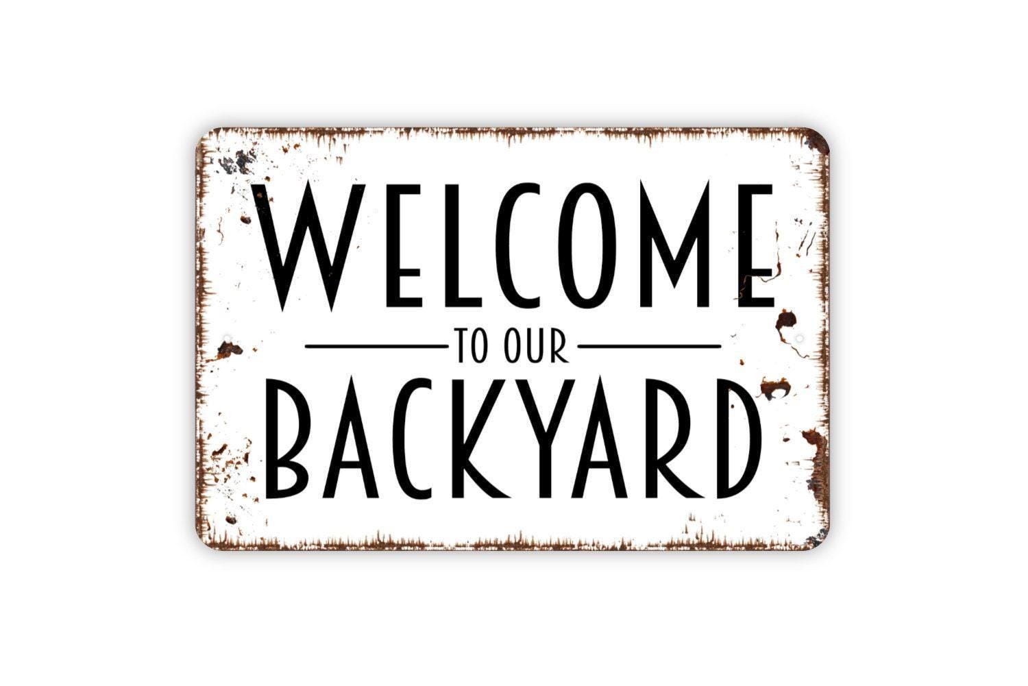 Welcome To Our Backyard Sign – Patio Garden Yard Wall Decor – Outdoor Living Space Family Gathering Plaque – Metal Sign or Sticker
