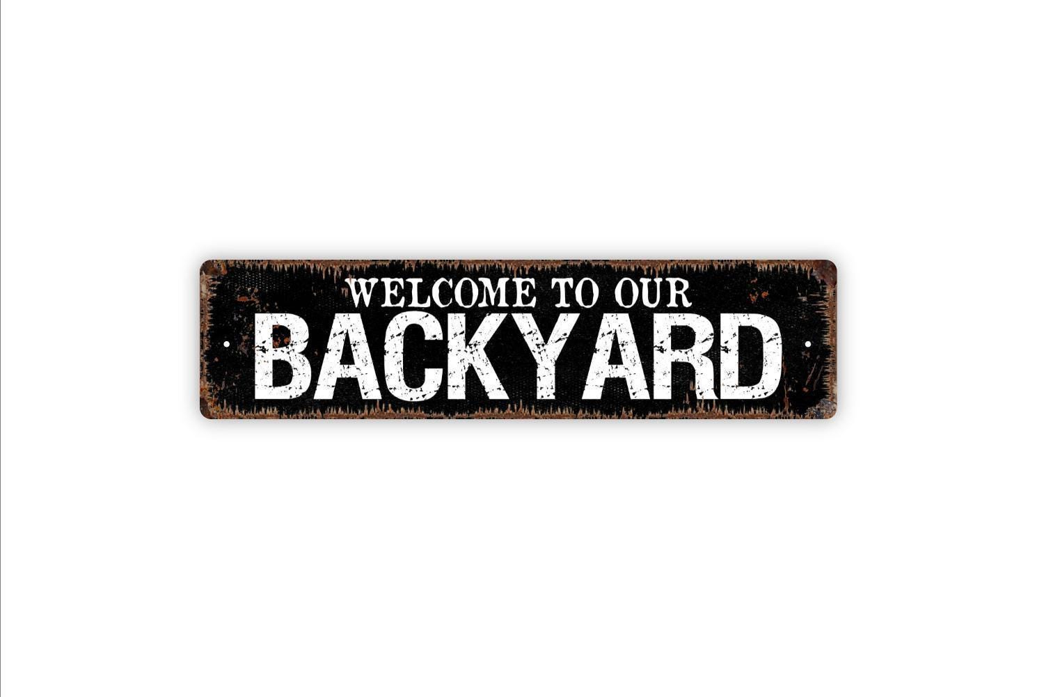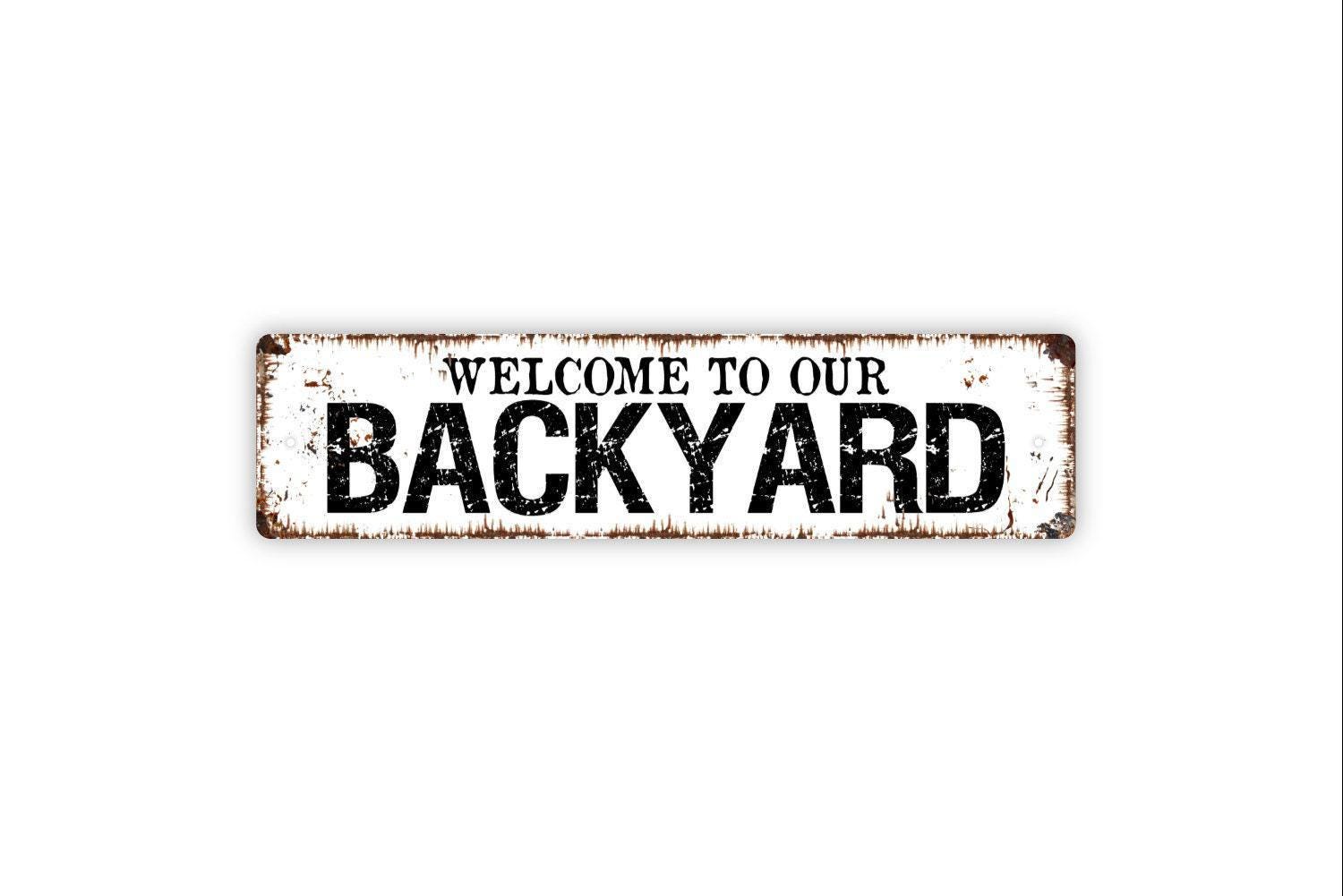 Welcome To Our Backyard Sign, Vinyl Sticker Or Custom Metal Sign, Vinyl Sticker Or Street Sign or Door Name Plate Plaque