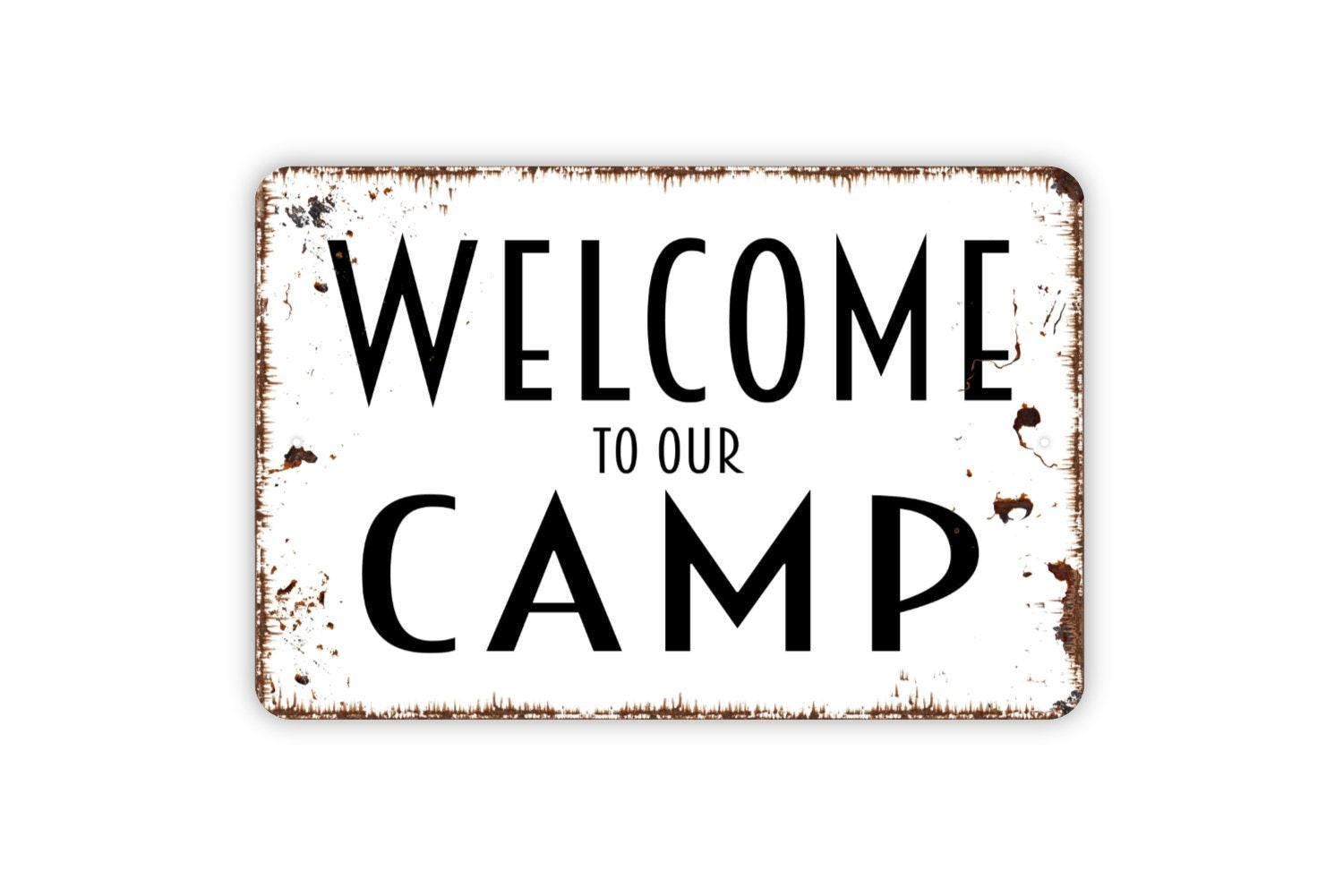 Welcome To Our Camp Sign | Rustic Cabin Wall Sign | Camping Family Decor | Custom Metal Sign or Vinyl Sticker | Lake House or Lodge Art